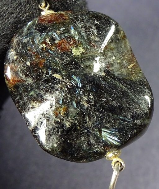 Astrophyllite is a very rare, brown to golden yellow hydrous potassium iron titanium silicate mineral. The name comes from the Greek words astron meaning “star” and phyllon meaning “leaf.” sharply with the light colored matrix the mineral is regularly found within. Astrophyllite is usually opaque to translucent, but may be transparent in thin specimens. The mineral is mostly interesting for scientists and collectors, though sometimes it is also used in jewelry where it is fashioned into cabochons.