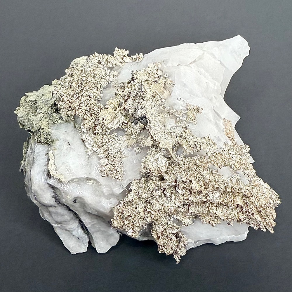 Dyscrasite is a silver antimonide. It forms orthorhombic, opaque, metallic, silver-white prismatic, to platy, striated crystals with pyramidal terminations; also as granular, foliated, or massive. It occurs as a primary mineral in silver ore deposits.
