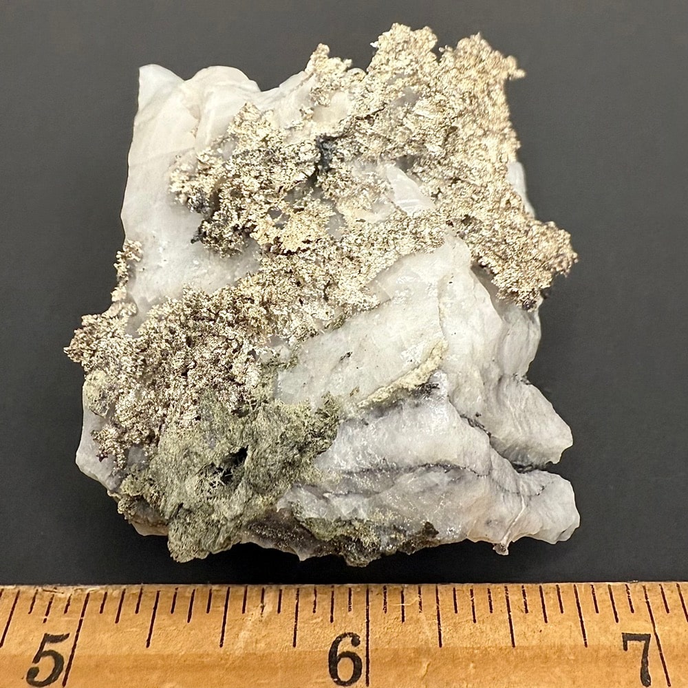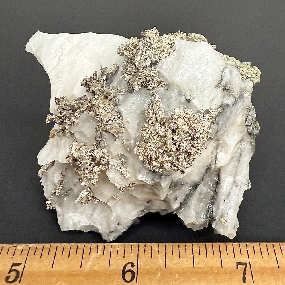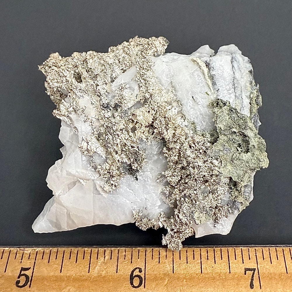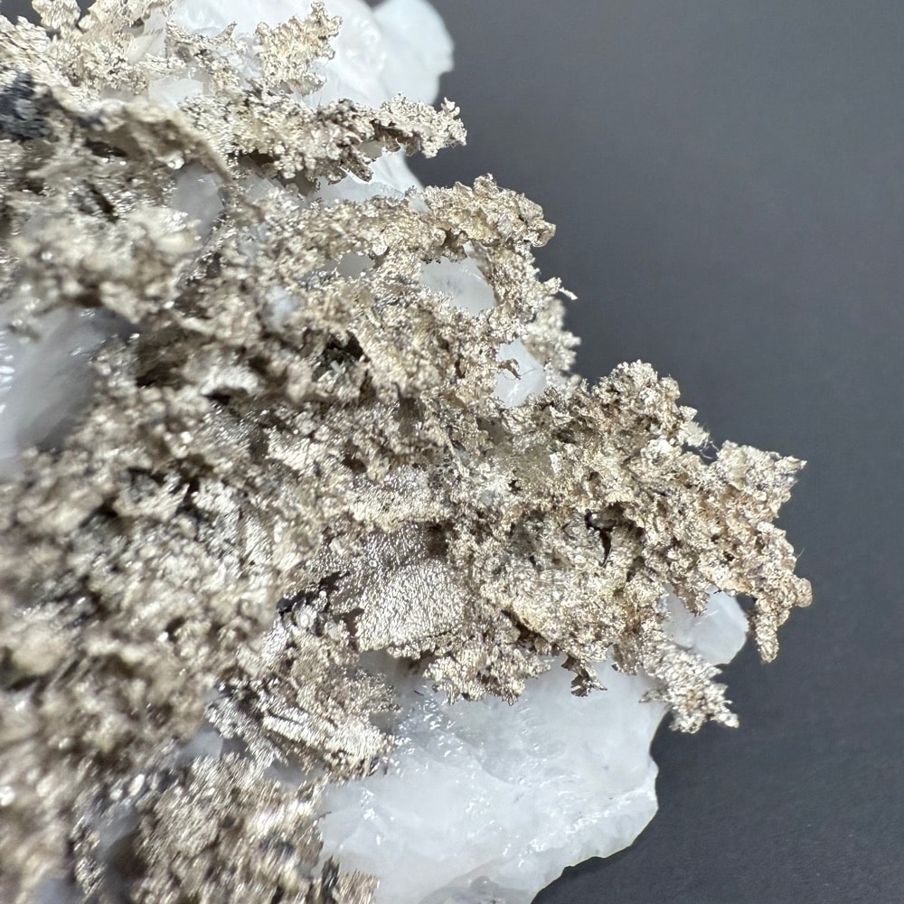 Acanthite is a common silver mineral in moderately low-temperature hydrothermal veins and in zones of supergene enrichment. It occurs in association with native silver, pyrargyrite, proustite, polybasite, stephanite, aguilarite, galena, chalcopyrite, sphalerite, calcite and quartz.