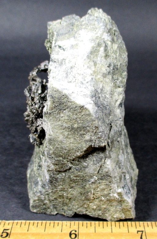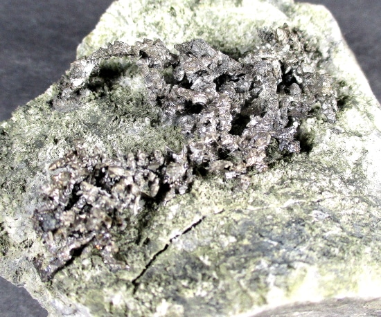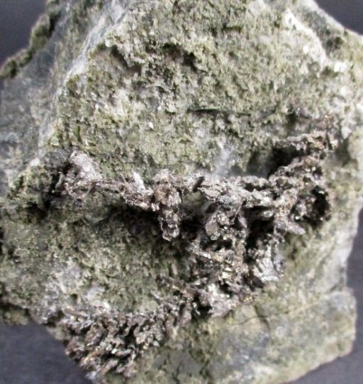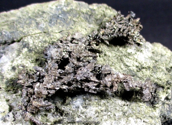 Dyscrasite is a silver antimonide. It forms orthorhombic, opaque, metallic, silver-white, prismatic to platy, striated crystals with pyramidal terminations; also as granular, foliated, or massive. It occurs as a primary mineral in silver ore deposits.