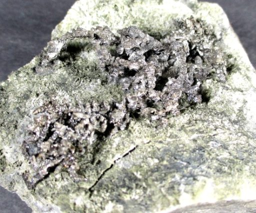 Acanthite is a common silver mineral in moderately low-temperature hydrothermal veins and in zones of supergene enrichment. It occurs in association with native silver, pyrargyrite, proustite, polybasite, stephanite, aguilarite, galena, chalcopyrite, sphalerite, calcite and quartz.