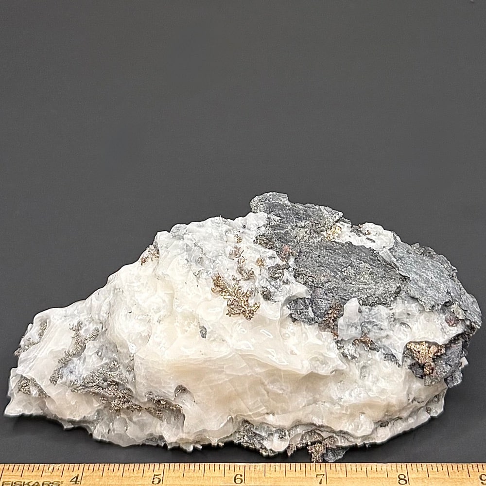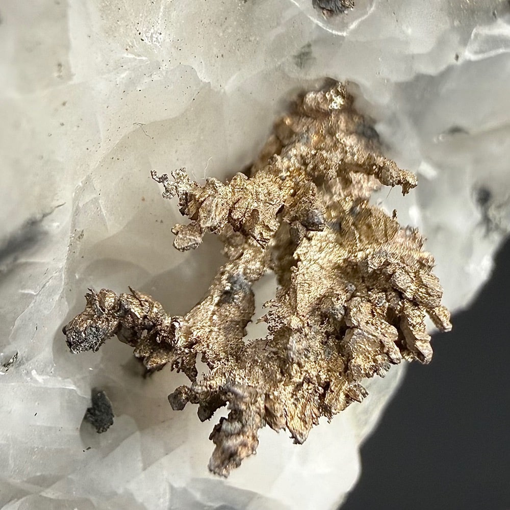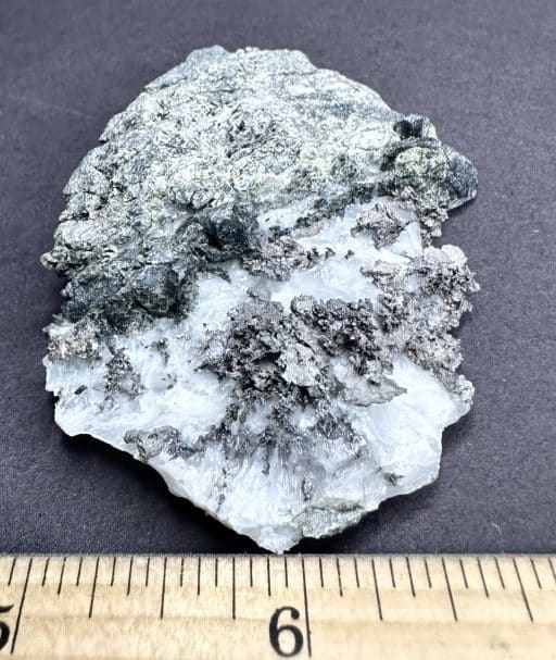 Acanthite is a common silver mineral in moderately low-temperature hydrothermal veins and in zones of supergene enrichment. It occurs in association with native silver, pyrargyrite, proustite, polybasite, stephanite, aguilarite, galena, chalcopyrite, sphalerite, calcite and quartz.