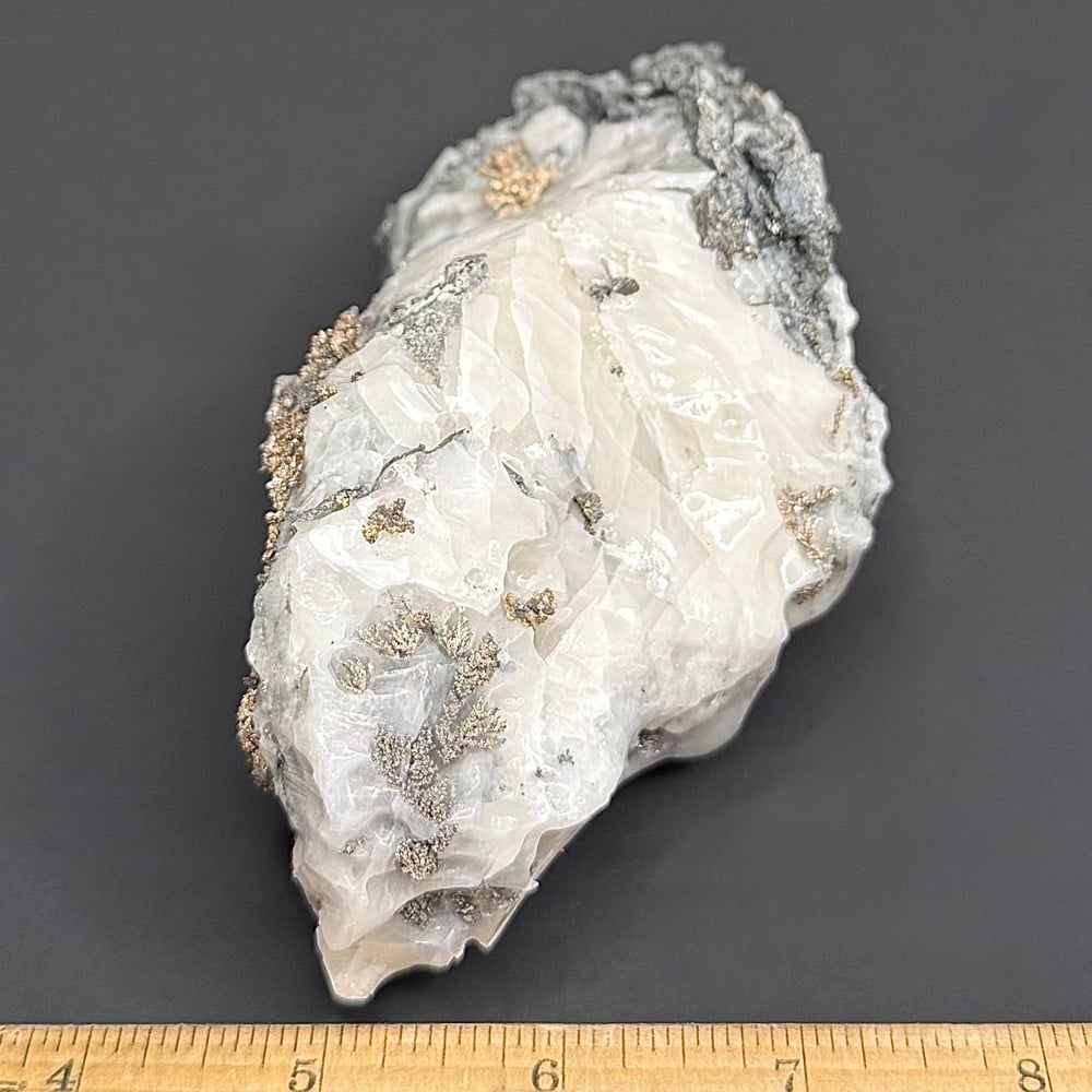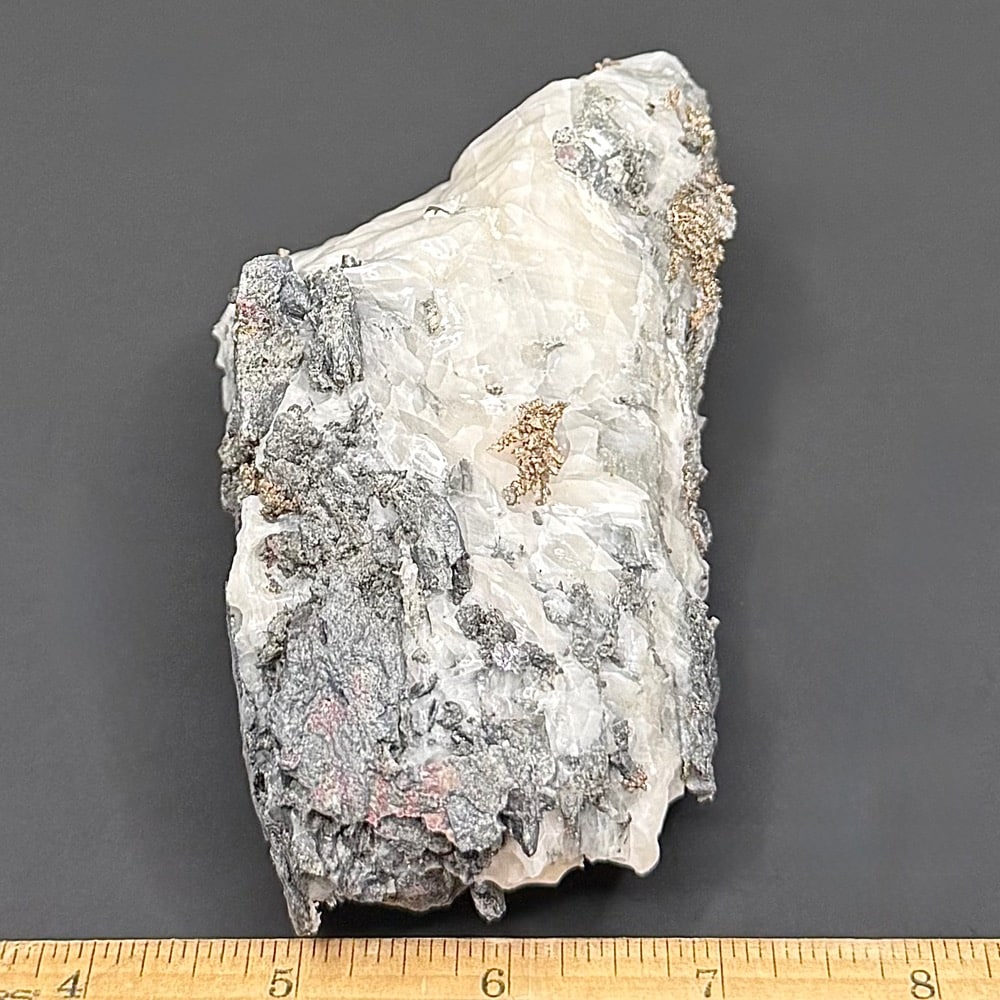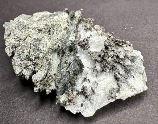 Dyscrasite is a silver antimonide. It forms orthorhombic, opaque, metallic, silver-white prismatic, to platy, striated crystals with pyramidal terminations; also as granular, foliated, or massive. It occurs as a primary mineral in silver ore deposits.
