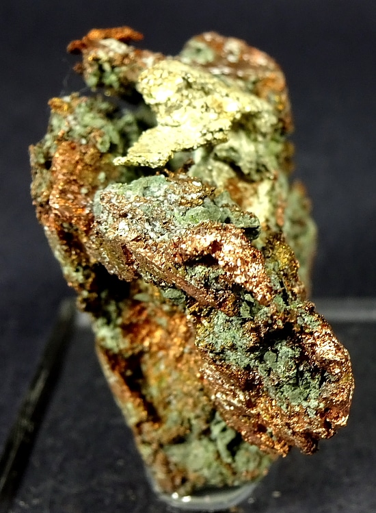 Appearance: Irregular shape with variations of smooth and rough surfaced bright tones, and areas of oxidation.