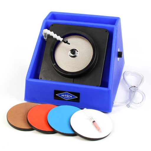 The Slant Cabber is powered by a 1/4HP, heavy duty, ball bearing DC motor. The motor is variable speed so you can work at whatever pace you desire, delivering speeds from 800 rpm to 3400 rpm. Each machine is manufactured with a 1/2″ arbor. This portable flat lap can be used anywhere. It is lightweight, sturdy and constructed with ABS plastic which is rust-free, making it easier to travel with.
