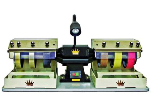 CK-8V1 The CabKing-8V1 is the same grinding and polishing machine as the CabKing-6V3 except it holds 8″ diameter diamond wheels instead of 6″, creating more surface area for you to work with. This machine is more ideal if you are working with bigger gemstones and pieces. An optional Saw Attachment, sintered sawblade included, is also available for the CabKing-8V1. Cut, grind and polish with just one machine! So why CabKing-8V1?