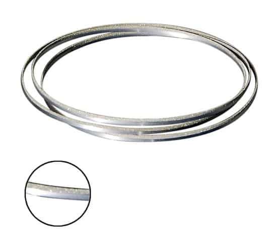 90007 This 37.7″ stainless steel, diamond band saw blade is designed for wet sawing glass, stone, semiprecious gems, tile, ceramic, porcelain, marble, granite, silicon, plastics, fiberglass, fiberboard, leather, shells, and live coral. Use on any Inland Craft DB-100 band saw.