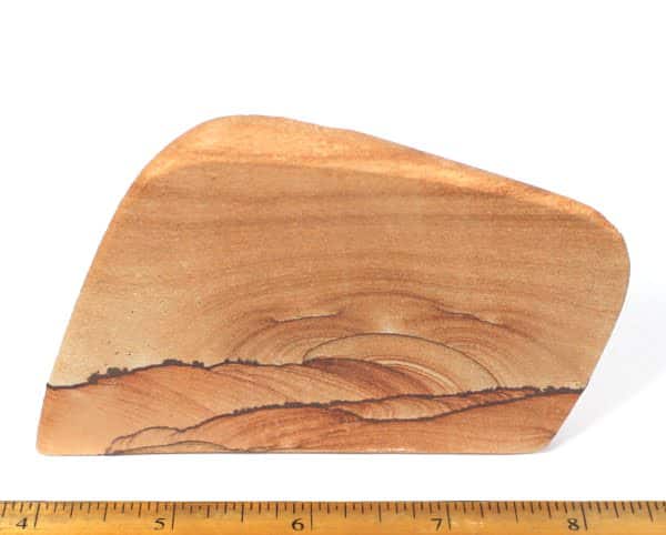 Sandstone is a sedimentary rock composed mainly of sand size mineral or rock grains. Most Sandstone is composed of Quartz and/or Feldspar because these are the most common minerals in the earth’s crust. It can be almost any color. The Sandstone beds often form highly visible cliffs and are strongly identified with certain regions of the world.