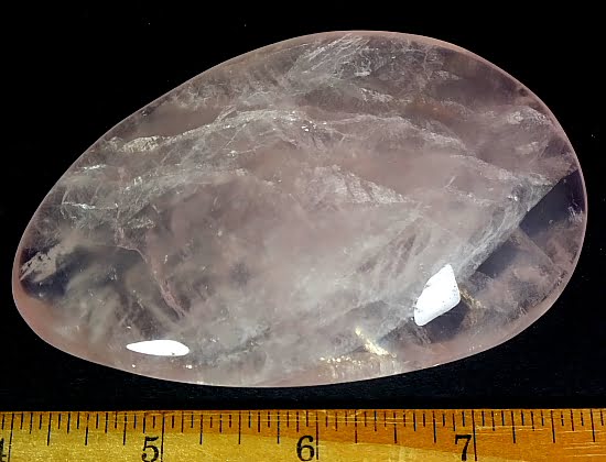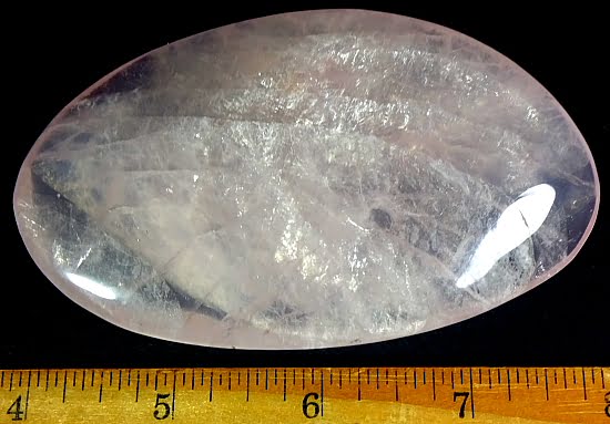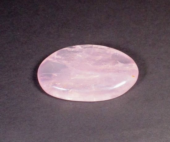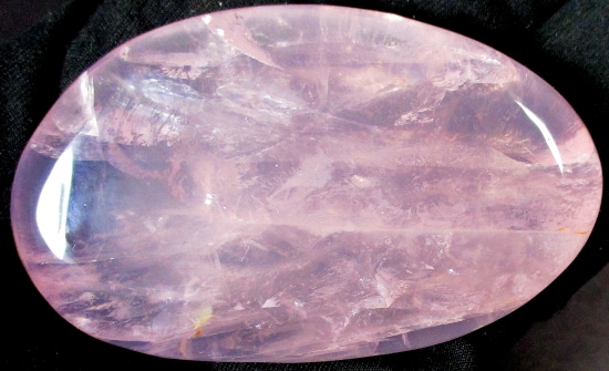 Rose Quartz is a type of Quartz which exhibits a pale pink to rose red hue.  The color is usually considered as due to trace amounts of Titanium, Iron or Manganese, in the massive material.  Some Rose Quartz contains microscopic Rutile needles which produce an asterism in transmitted light.