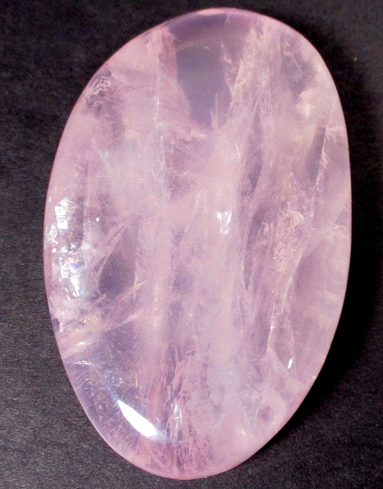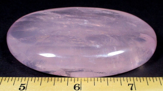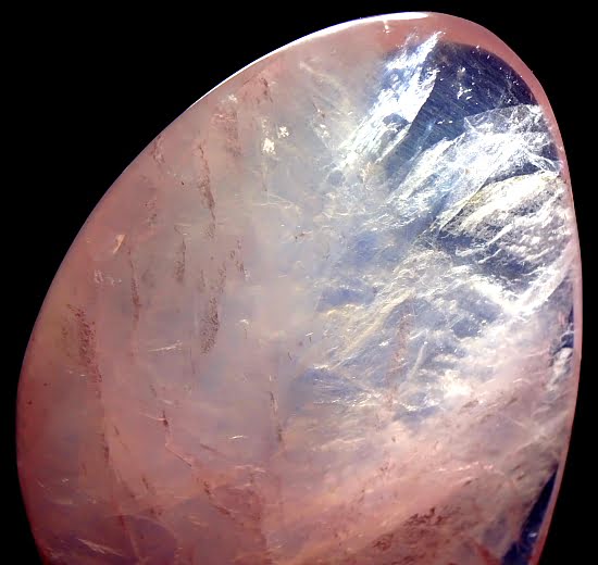 Rose Quartz is a type of Quartz which exhibits a pale pink to rose red hue. The color is usually considered as due to trace amounts of Titanium, Iron or Manganese, in the massive material. Some Rose Quartz contains microscopic Rutile needles which produce an asterism in transmitted light.