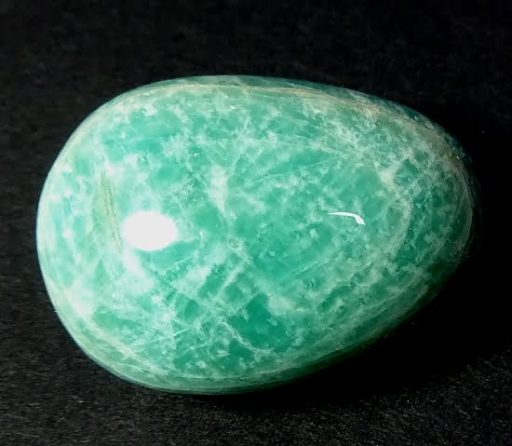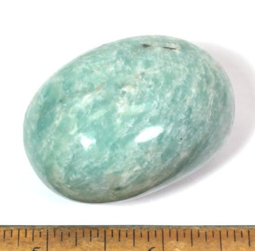 Here is a pretty polished Amazonite specimen from Australia.  This interesting specimen is polished all around and measures 1 5/8″ x 1 1/4″ x just over 1″ thick and has good design.  Close observation will reveal small fracture lines which is common for this material.