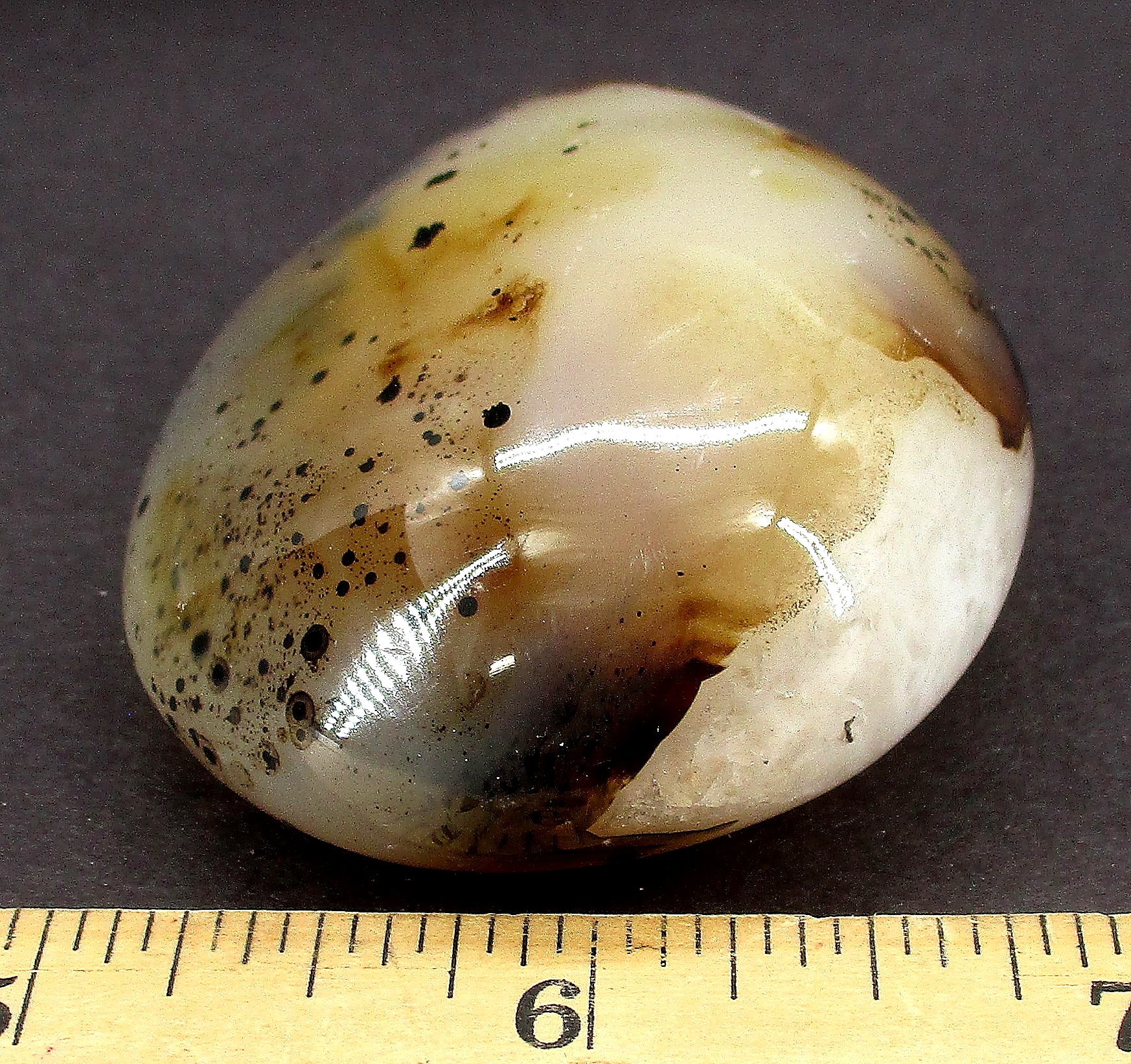 Agates mostly occur as nodules in volcanic rocks or waters containing Silica in solution which is possibly derived from the decomposition of Silicates in the lava. The Siliceous matter is deposited in regular layers resulting in the banded or striped formation. It is very unlikely that you would ever find an exact duplicate of any type of Agate.