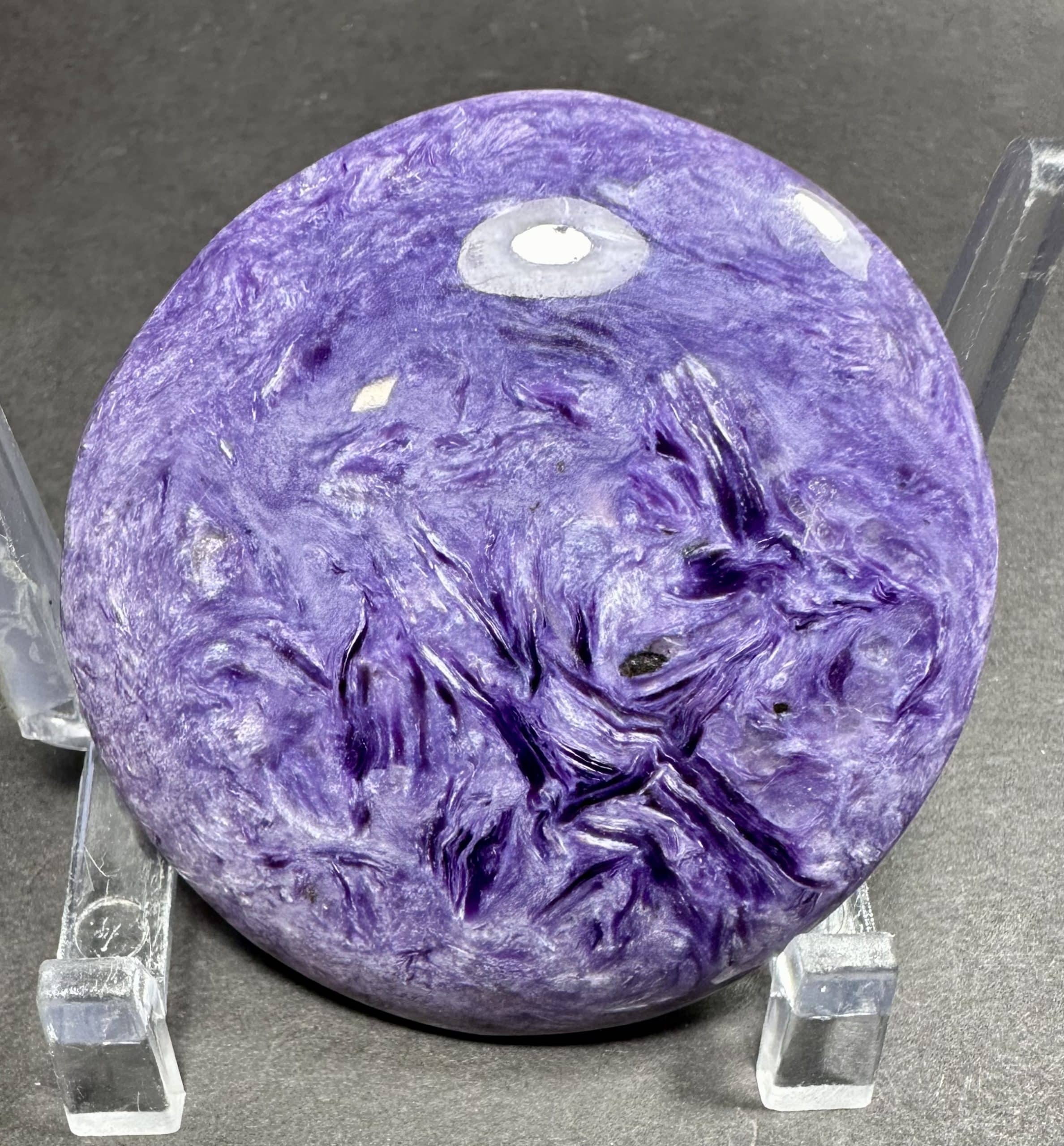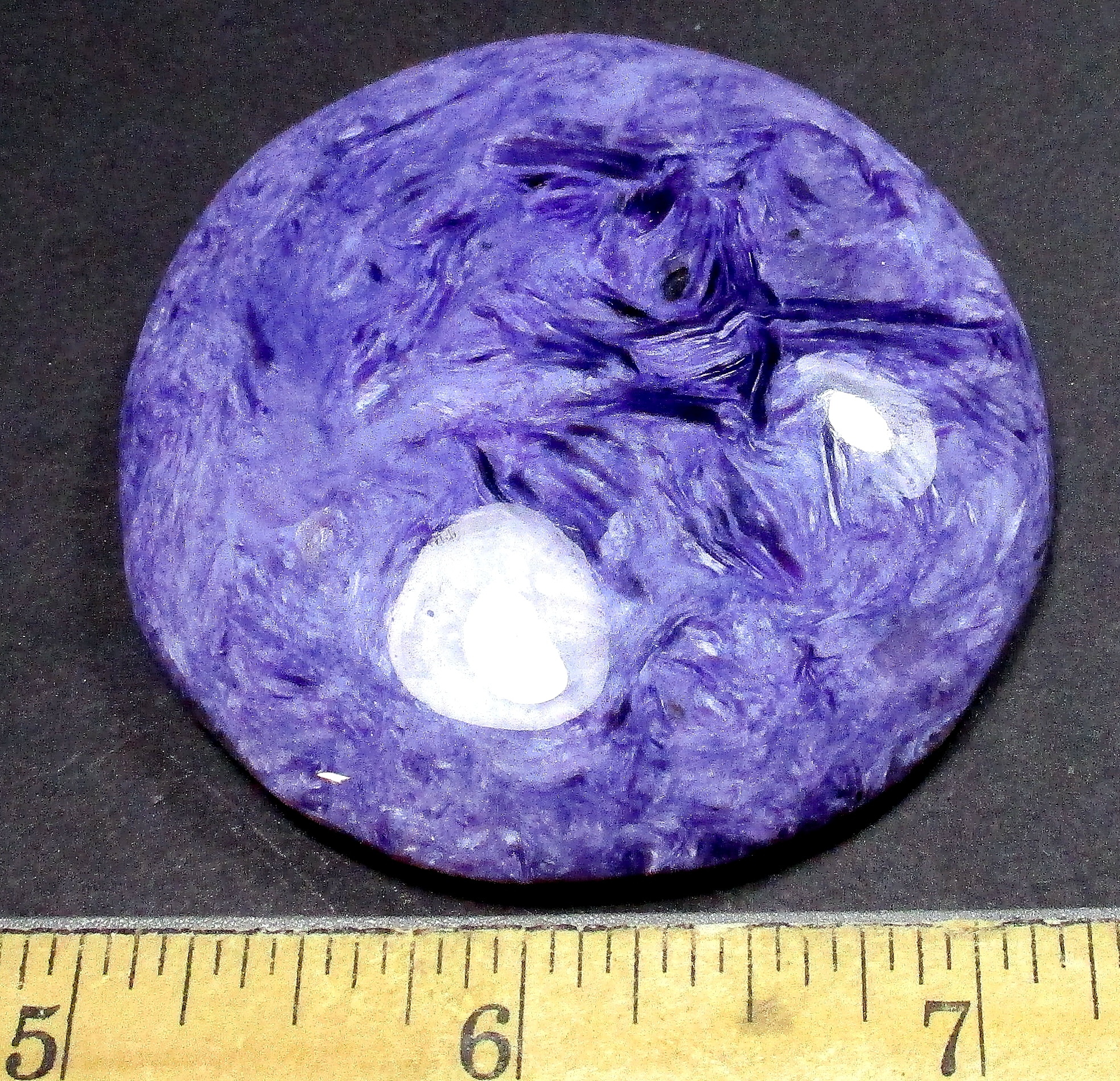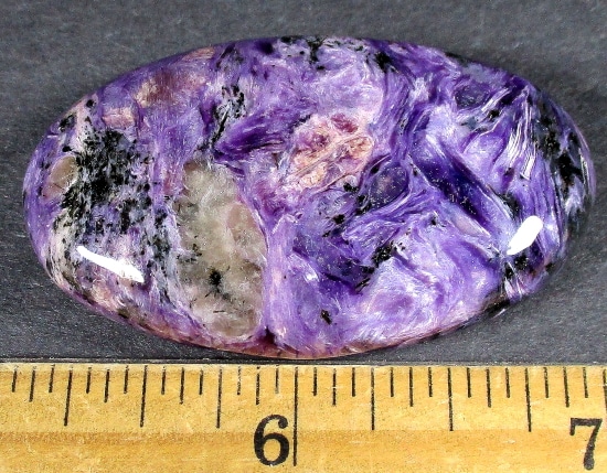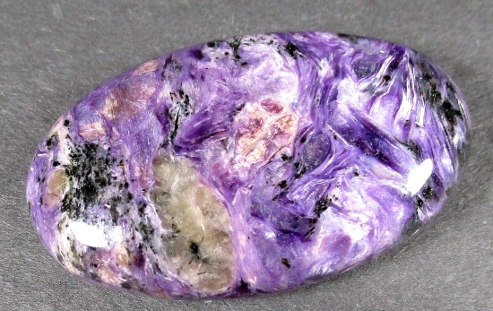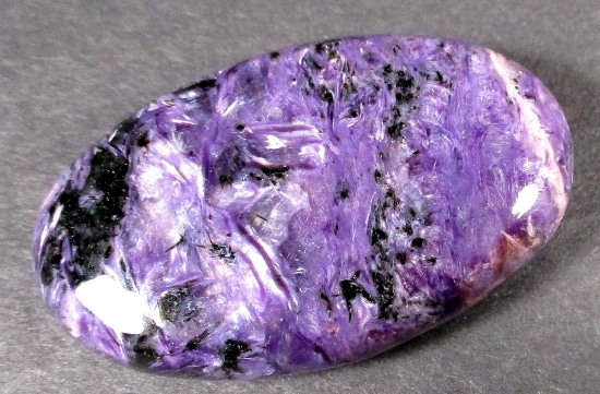 Charoite is newly found mineral, first discovered in the 1940s and described to the world in 1978. It is found only in Siberia, Russia and is a translucent lavender to purple color. Charoite has a swirling, fibrous appearance and is strictly massive in nature. It is used as an ornamental stone and sometimes as a gemstone.