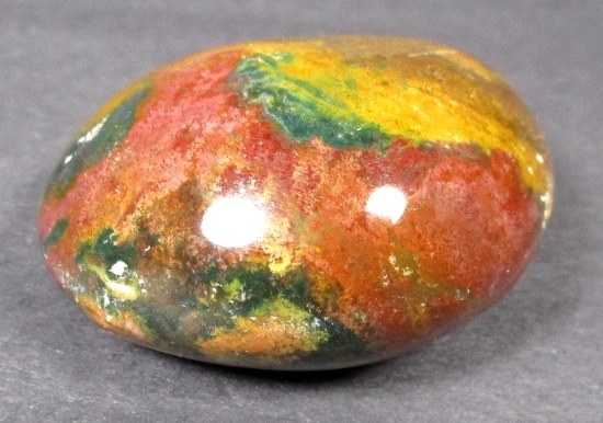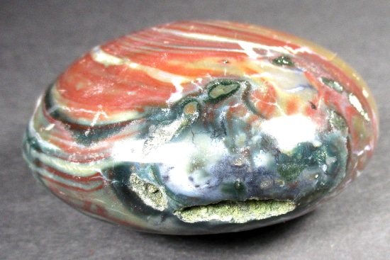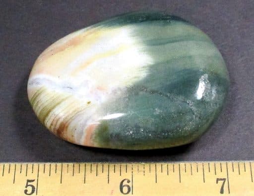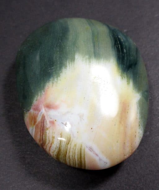 Here is something new and different from the Rock Shed’s gift department, a very pretty Madagascar Jasper stone.  It has a unique shape with a nice array of pastel colors. It has a good polish and measures 2 3/8″ x 2 1/8″ x 1 3/8″. Grab this one quick!