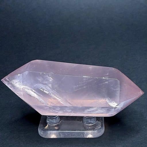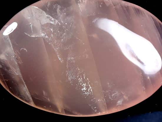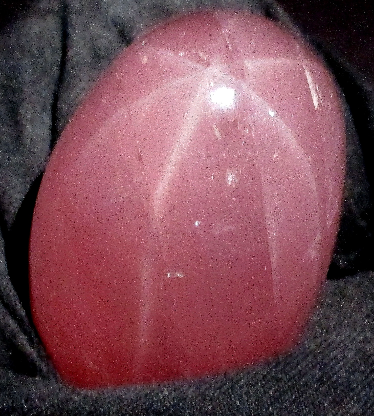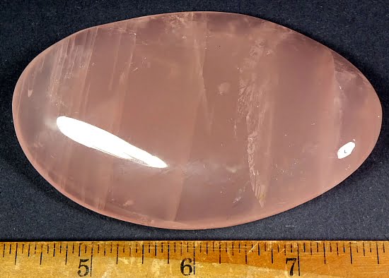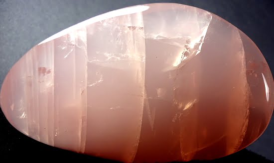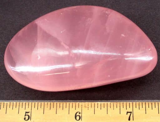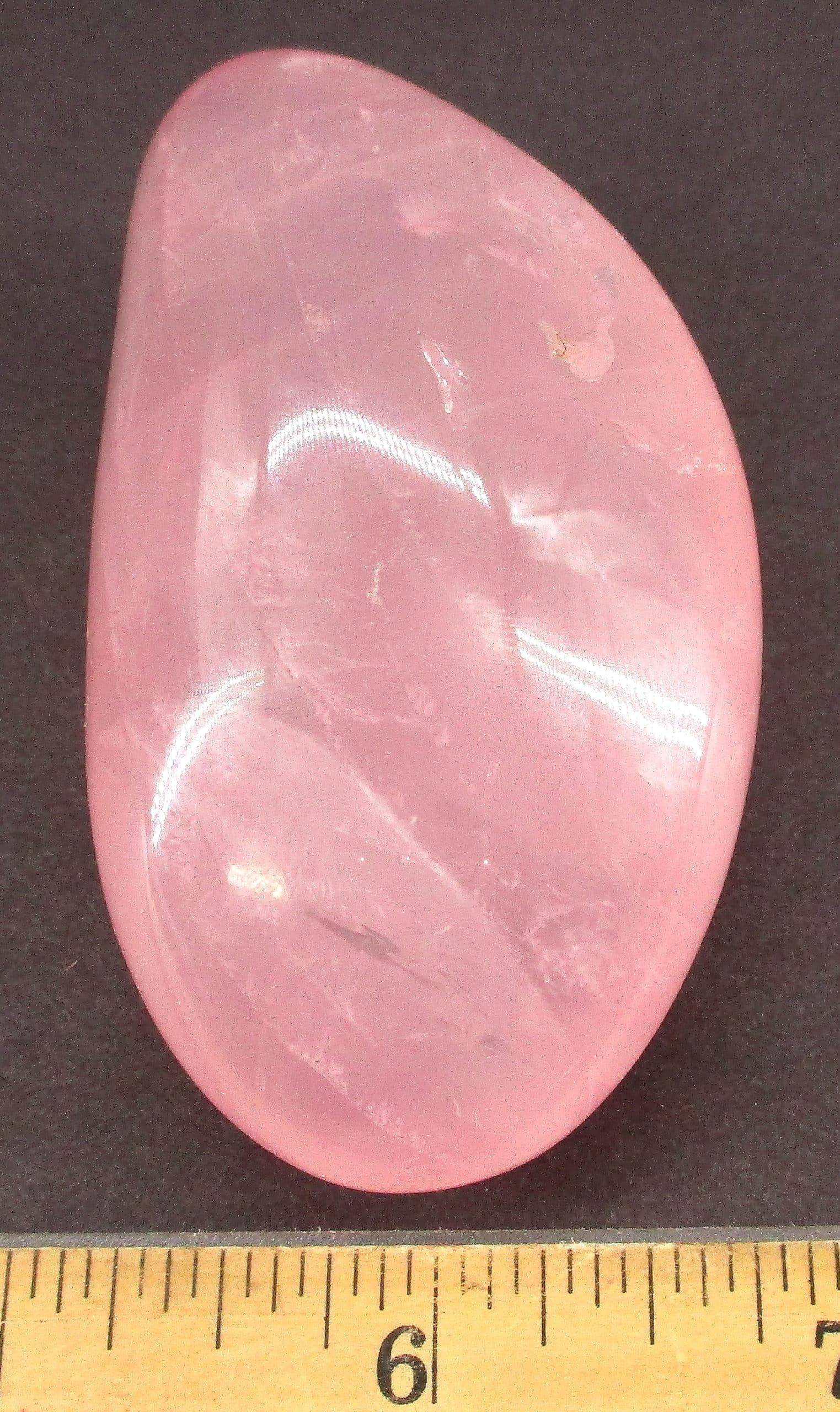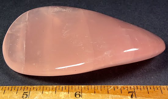 Rose Quartz is a member of the Quartz family that exhibits a pale Pink to Rose Red hue. The color is usually due to the trace amounts of Titanium, Iron or Manganese in the mass material. Some Rose Quartz contains microscopic Rutile needles which produce an asterism in transmitted light. An all-time favorite at the Rock Shop.