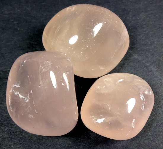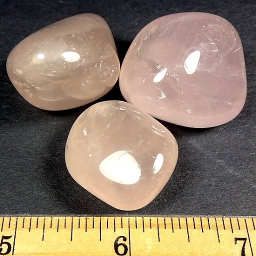 Rose Quartz is a member of the Quartz family that exhibits a pale Pink to Rose Red hue. The color is usually due to the trace amounts of Titanium, Iron or Manganese in the mass material. Some Rose Quartz contains microscopic Rutile needles which produce an asterism in transmitted light. An all time favorite at the Rock Shop.