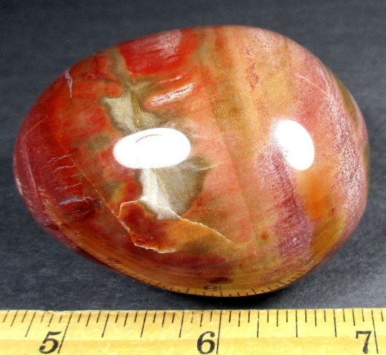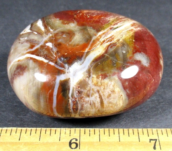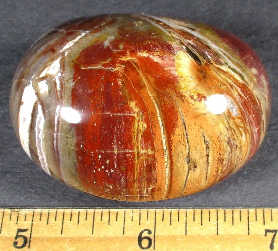 Petrified Wood is a type of a fossil as it consists of fossil wood where all the organic materials have been replaced with minerals while retaining the original structure of the wood.  These minerals are most often Silicates such as Quartz.  Other minerals, Manganese, Iron and Copper, in the water or mud during the petrification process give Petrified Wood a variety of color ranges: black – Carbon; green/blue – Copper; red/brown/yellow – Iron.  Petrified Wood can preserve the original structure of the wood in all its detail all the way down to the microscopic level.  Structures such as tree rings and the various tissues are often observed features.  Although Petrified Wood can be found worldwide, it is rather rare in larger quantities and at times can be difficult to obtain by the average collector.