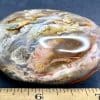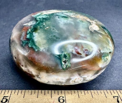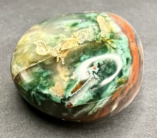 Jasper, or spotted stone, is an opaque, impure variety of Quartz that is usually red, yellow or brown in color. Some Jaspers simultaneously exhibit several variants such as banding, flow patterns, dendrites or color variations. This results in what appears to be scenes or images in a cut section of the Jasper.