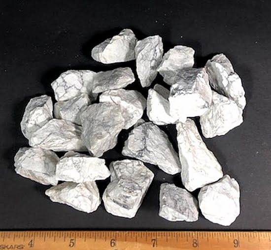 Howlite is a soft and sometimes brittle gemstone. It is usually white or colorless. It can be translucent in thin fragments. It is associated with Colemanite, Ulexite, and Bakerite and is found in Borate deposits. It is usually dyed to simulate real “Turquoise” in jewelry.