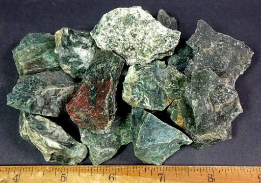 This is crushed Green Moss Agate from India in various sizes from 3/4″ to 2″ as it comes from the barrel.  This is a great quality tumbling rock and has interesting designs. Please note some bags may also include pieces of Green Tree Agate. These also can be cut and cabbed into a beautiful stone for pendants, earrings etc. They’re great tumbling rock or use it just as is for fountains or other decorative uses.