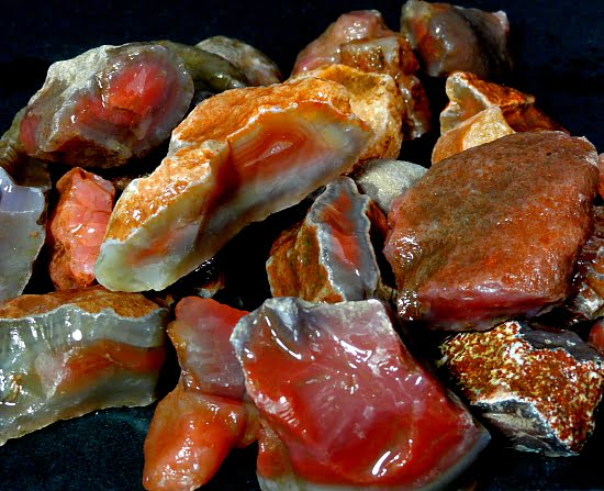Agates mostly occur as nodules in volcanic rocks or waters containing silica in solution possibly derived from the decomposition of silicates in the lava. The siliceous matter is deposited in regular layers resulting in the banded or striped formation.