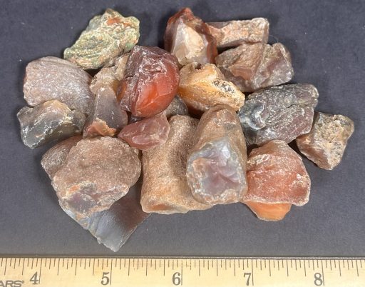 Here is a very beautiful batch of small Mozambique also known as Swazi Agates from southeastern Africa.  The pieces range in size from 1/2″ to 1 1/4″+ with a color range of mixed red, blue and orange colors with lighter bands for a nice appearance.
