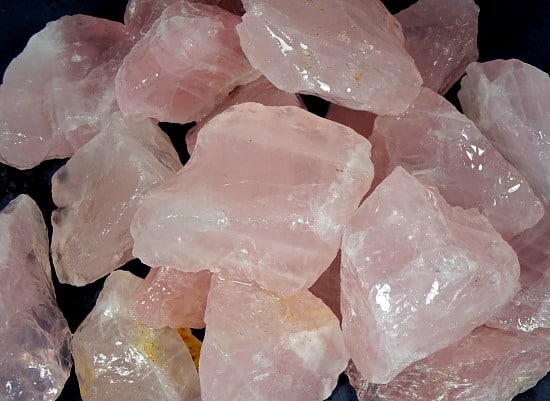Rose Quartz is a type of Quartz which exhibits a pale pink to rose red hue. The color is usually considered as due to trace amounts of Titanium, Iron or Manganese, in the massive material. Some Rose Quartz contains microscopic Rutile needles which produce an asterism in transmitted light.