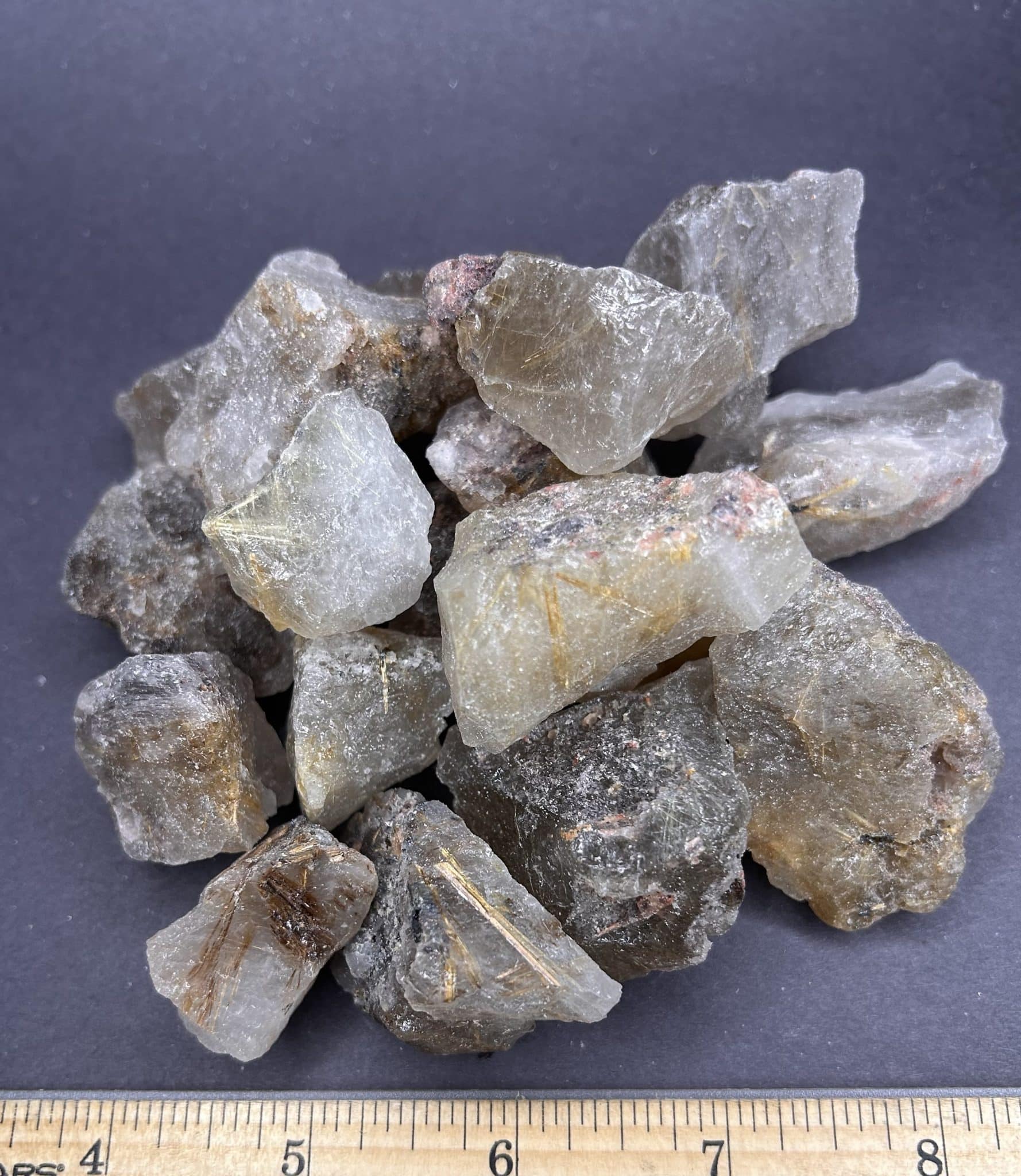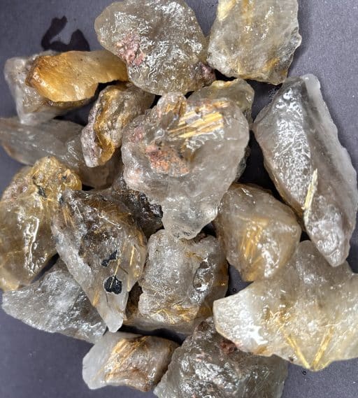 Rutile is a mineral composed primarily of Titanium Dioxide. Rutile has among the highest refractive indices of any known mineral and also exhibits high dispersion. Rutile is known to contain up to 10% Iron as well as significant amounts of Niobium and Tantalum. Rutile creates small needles within crystals that can be seen when held up to light.