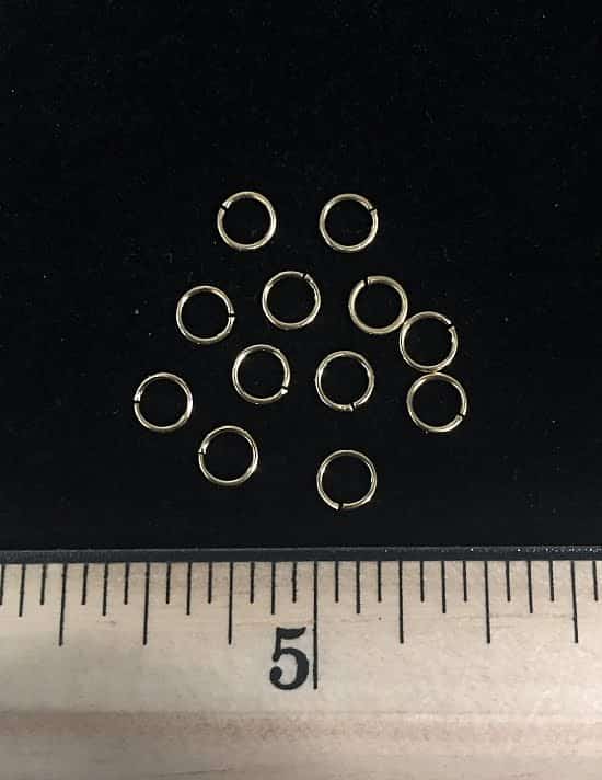Jump Ring Medium Gold color (5mm – 20 gauge) – typically used for small findings such as the small bell caps (FN-1 and 2 above), for earrings, small pendants or other small jewelry items. (sold in units of twelve)