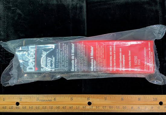 Devcon 5 Minute Epoxy – This is a 2 part epoxy glue. Mix the two parts together for a super fast, clear liquid epoxy for a speedy bond even in thin films and at low temperatures. Bonds many surfaces, iron, steel, aluminum, bronze, glass, ceramic, copper, lead, wood, and others.