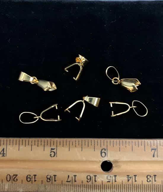 Gold Color Pronged Bail. After a hole has been drilled through a stone these clamp through the hole for a quick easy pendant. Measures 6mm x 22mm