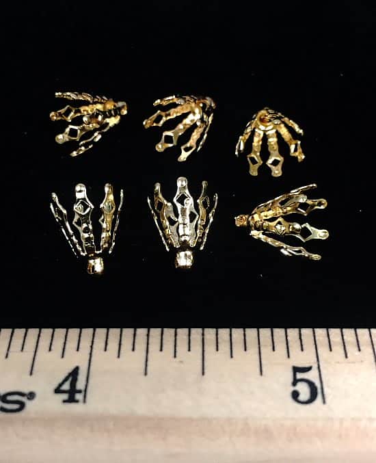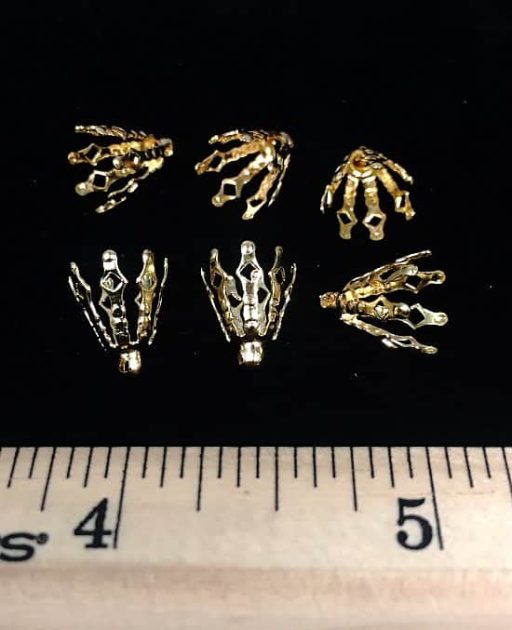 Bell Caps Gold Color – Large Size – typically used to glue to tumbled stones, slabs or other decoration for making pendants, charms, wind chimes, sun catchers etc. (sold in units of six)