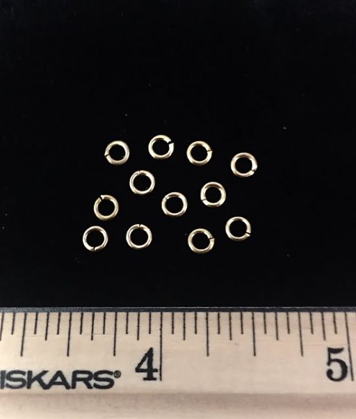 Jump Ring Small Gold color (4mm – 20 gauge) – typically used for small findings such as the small bell caps (1FN3 and 4 above), for earrings, small pendants or other small jewelry items. (sold in units of twelve)