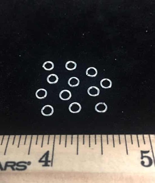 Jump Ring Small Silver color (4mm – 20 gauge) – typically used for small findings such as the small bell caps (FN-1 and 2 above), for earrings, small pendants or other small jewelry items. (sold in units of twelve)