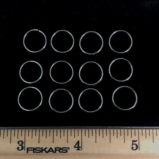 12 mm Silver Color Jump Ring – typically used for larger findings such as connecting larger gemstone or bead units when constructing necklaces or bracelets. (sold in units of twelve)