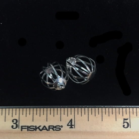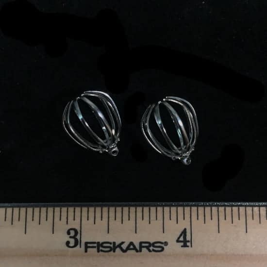 Silver Color Cage – Large size; 15 mm x 13 mm oval; typically used for pendants or ear drops to insert beads, small gems or small tumbled stones.