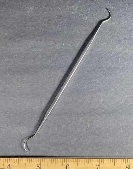 This is a nice inexpensive Cleaning Pick to assist with your rock processing. It has great sturdy points that allows you to get into to those hard to reach places to dig out either dirt in rock cavities or polish in your finished products. An essential tool for any type of rock processing or cleaning. For hardware use only.