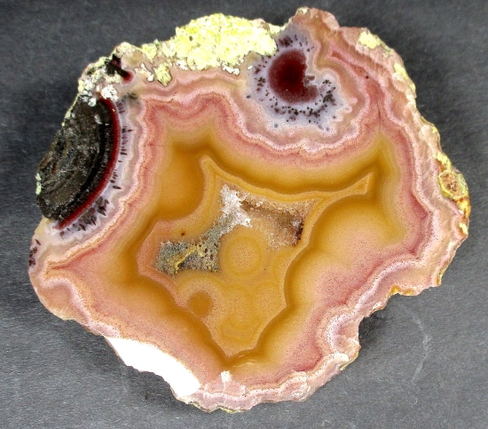 Laguna Agate is on of the most highly praised banded agates in the world. It is known for its extremely tight banding and vibrant shades of red and scarlet. Laguna Agate is a variety of banded Chalcedony, a mineral of the Quartz family. Though predominantly scarlet, its layers may contain shades of deep red, milky white, yellow, gold and brown.