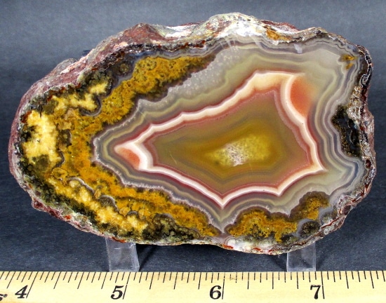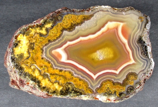 Both nodule and vein/seam Moroccan agates come from the Atlas Mountain region in Kerrouchen , Morocco. The agate nodules are known for their intense red, pink, white, yellow, orange and brown agate hues.