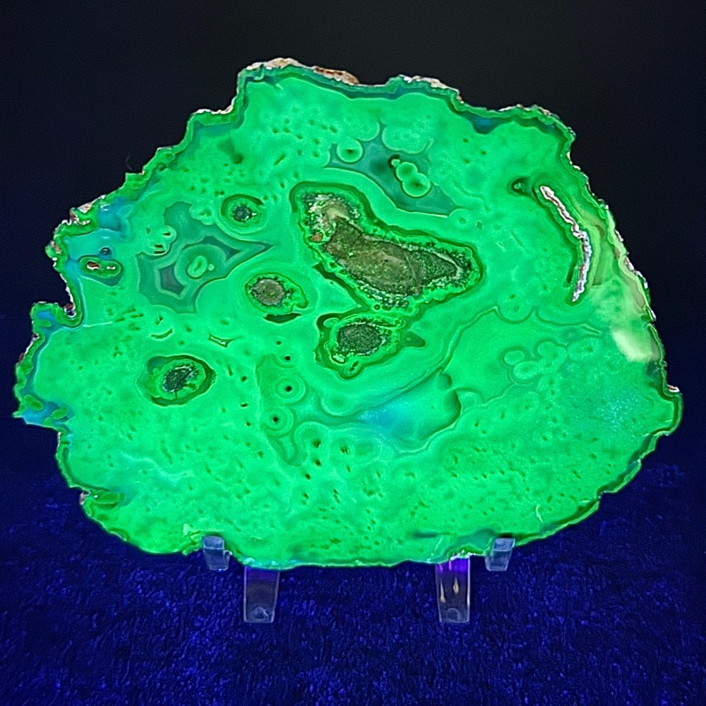 Appearance: High glossy polish. Rough end. Translucent. UV fluorescent (shot with uvBeast 365nm(nanometer) Black Light UV flashlight).