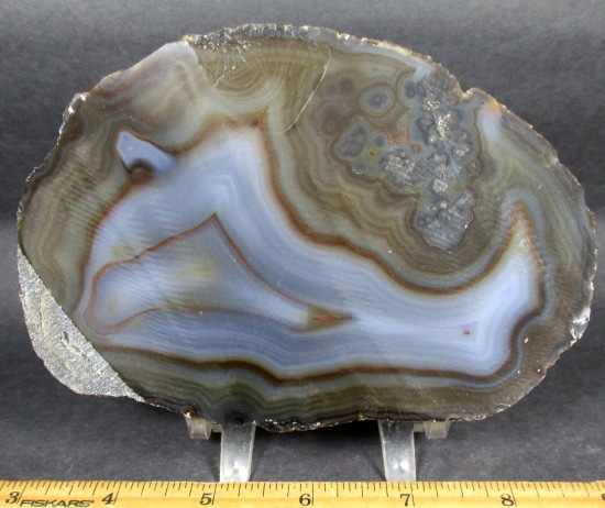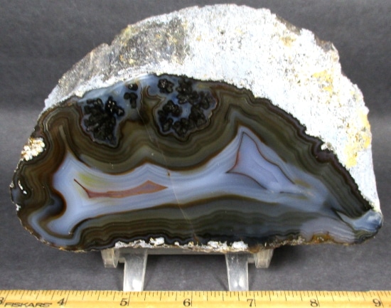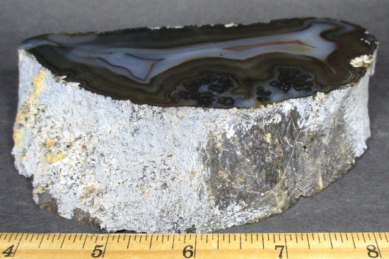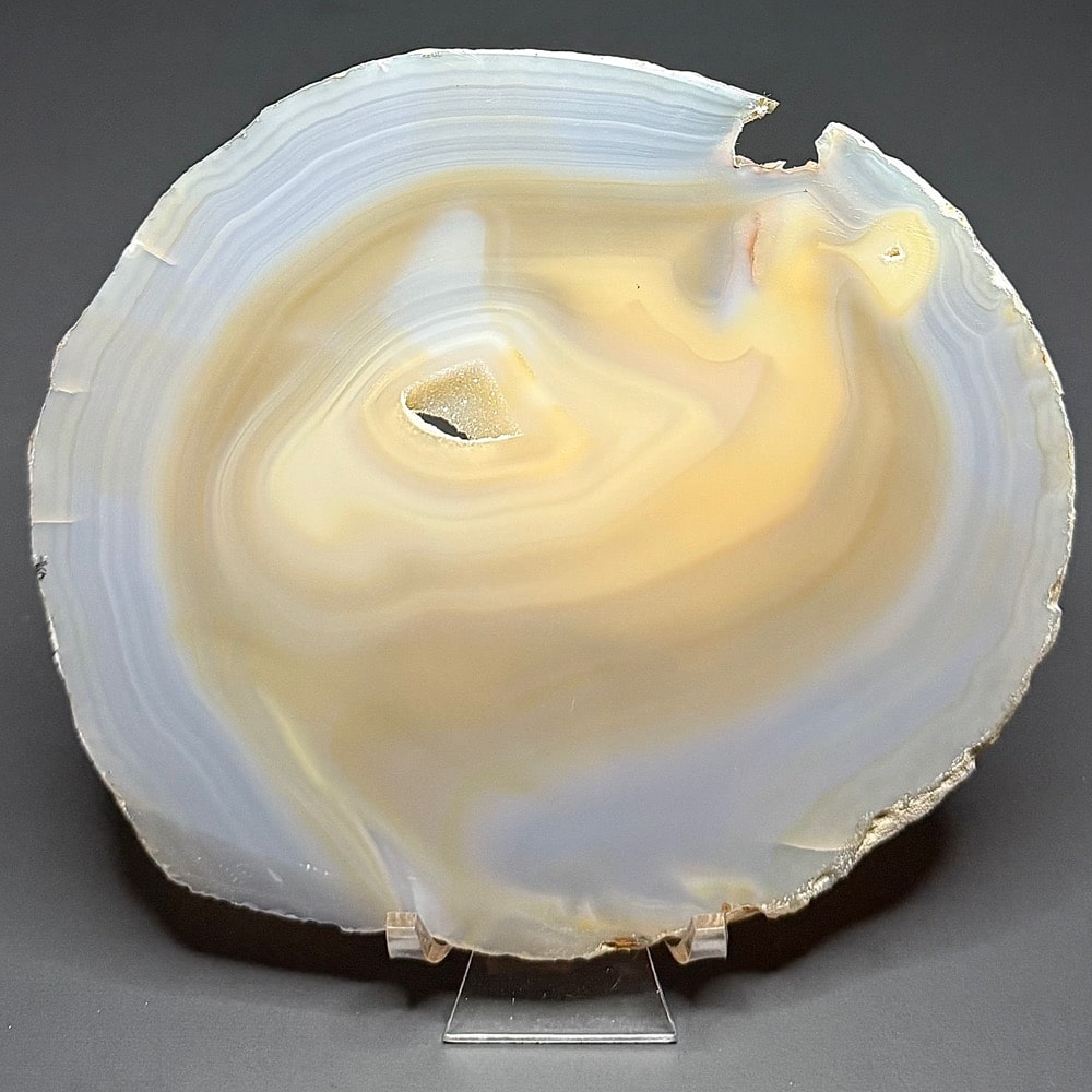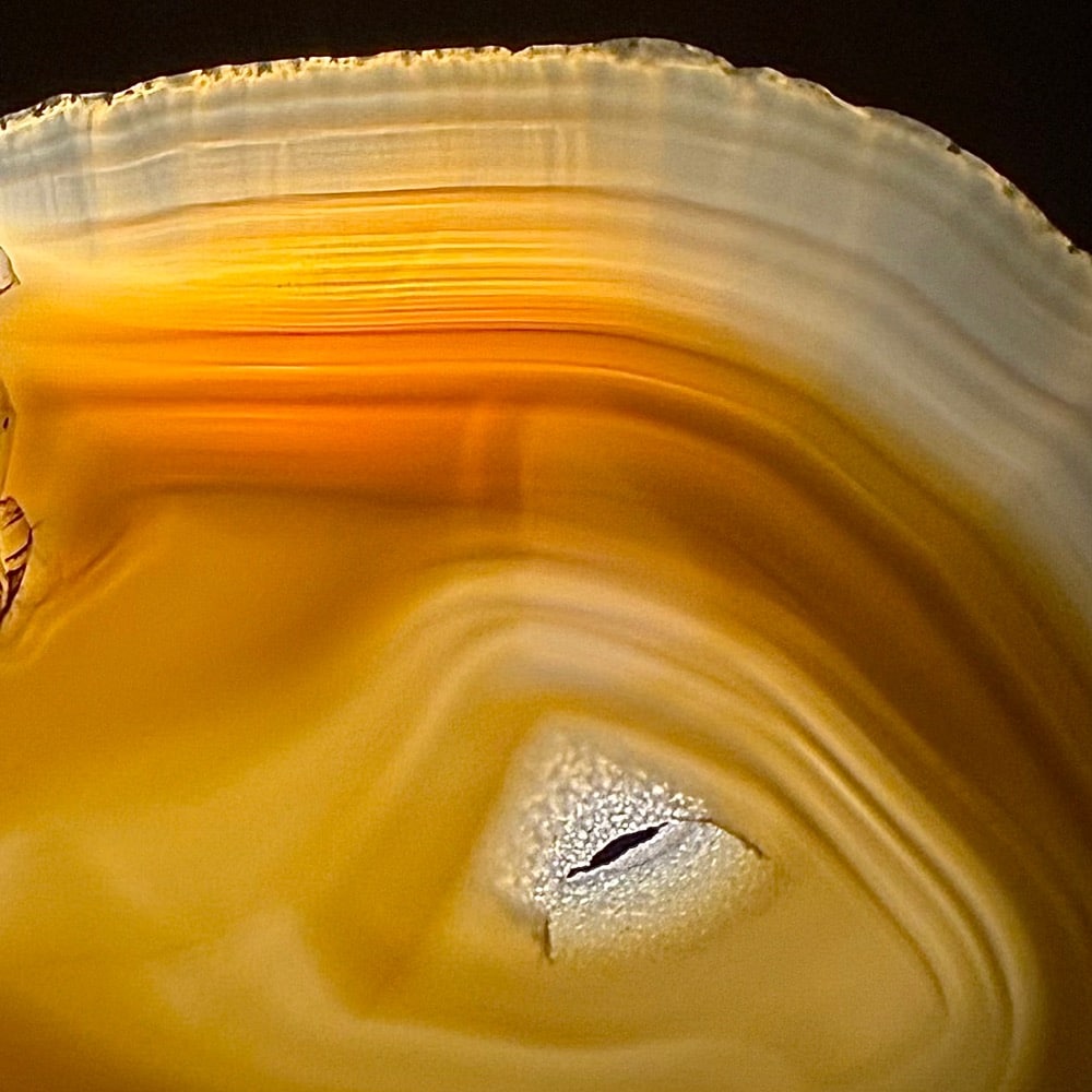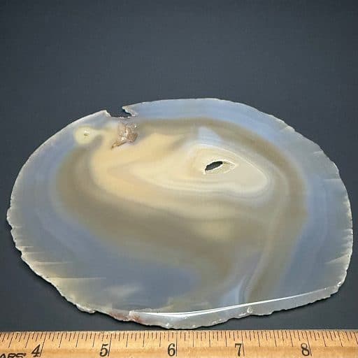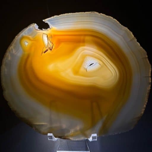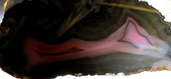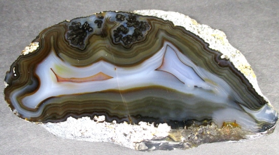 Agates mostly occur as nodules in volcanic rocks or waters containing silica in solution possibly derived from the decomposition of silicates in the lava. The siliceous matter is deposited in regular layers resulting in a banded or striped formation.
