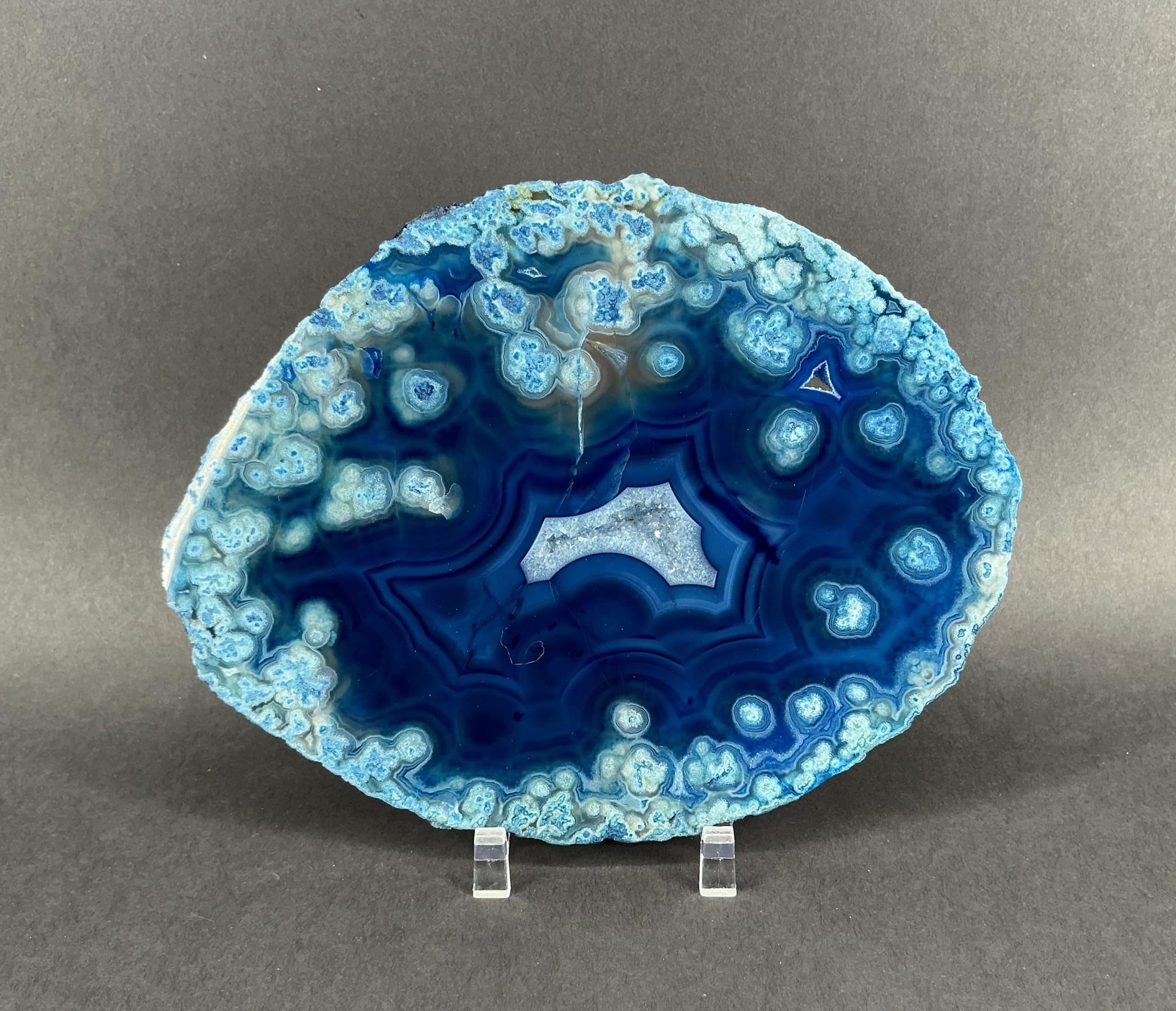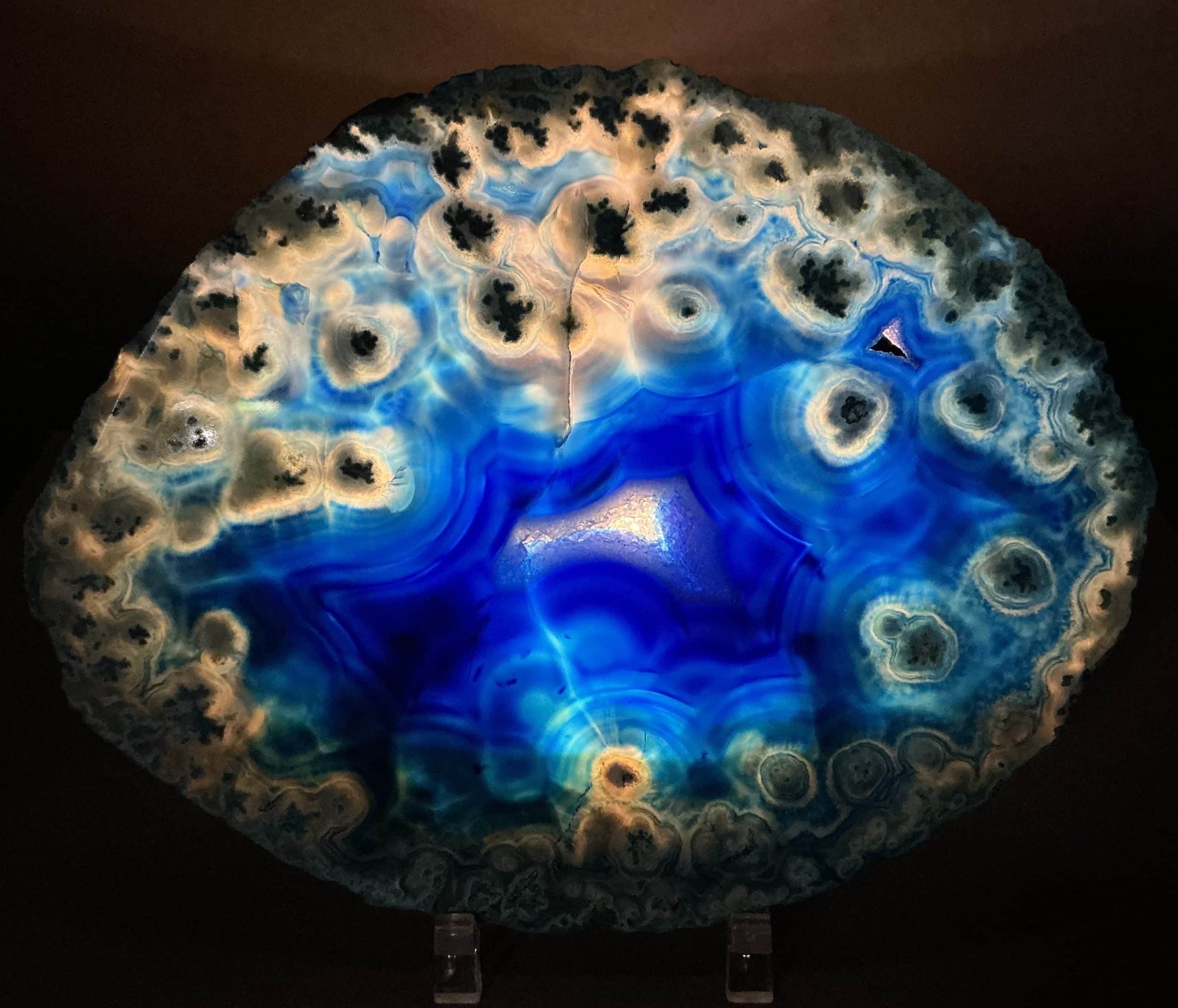 Appearance: Enhanced blue. Beautiful banding. Translucent.