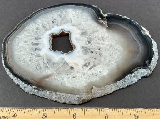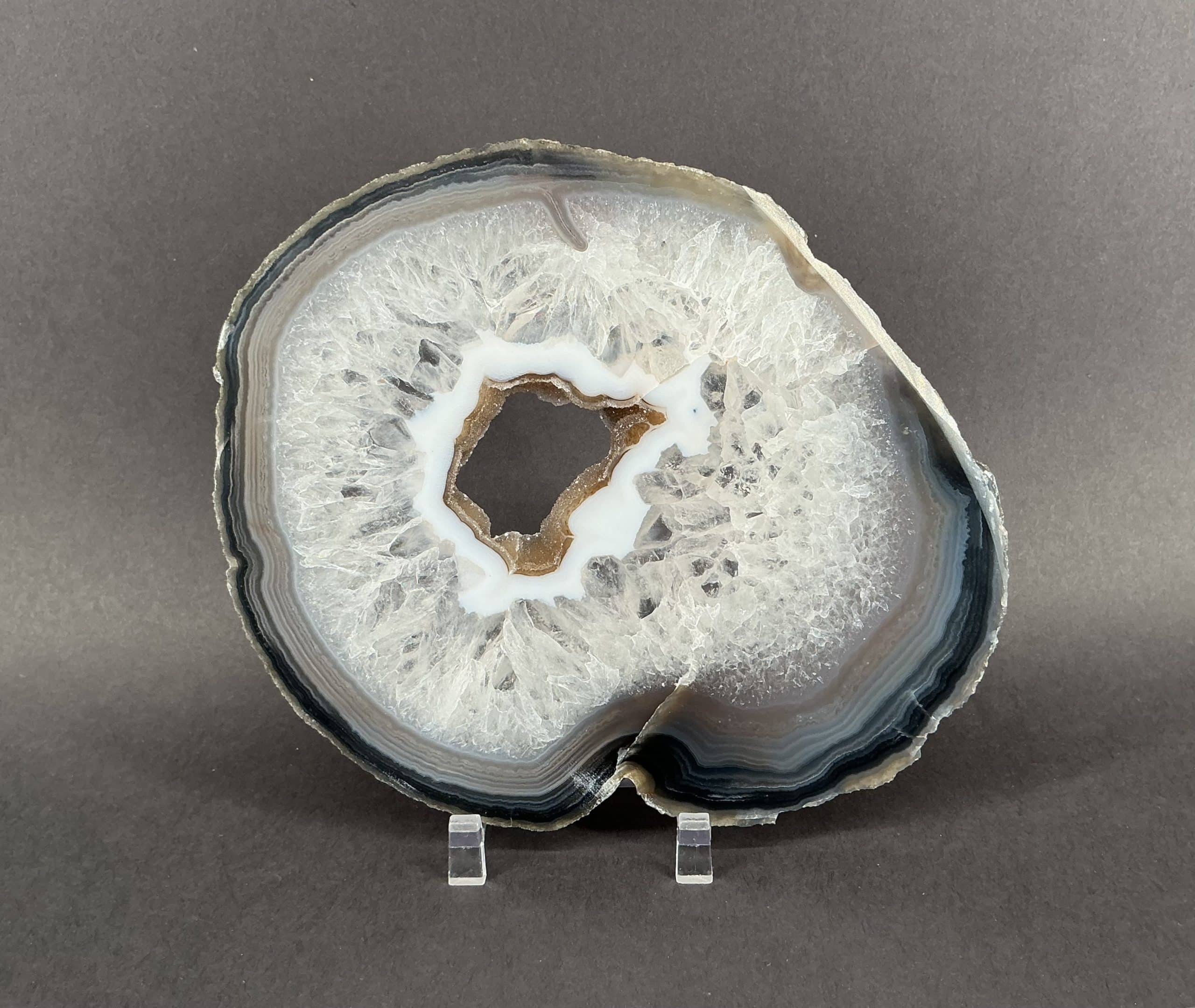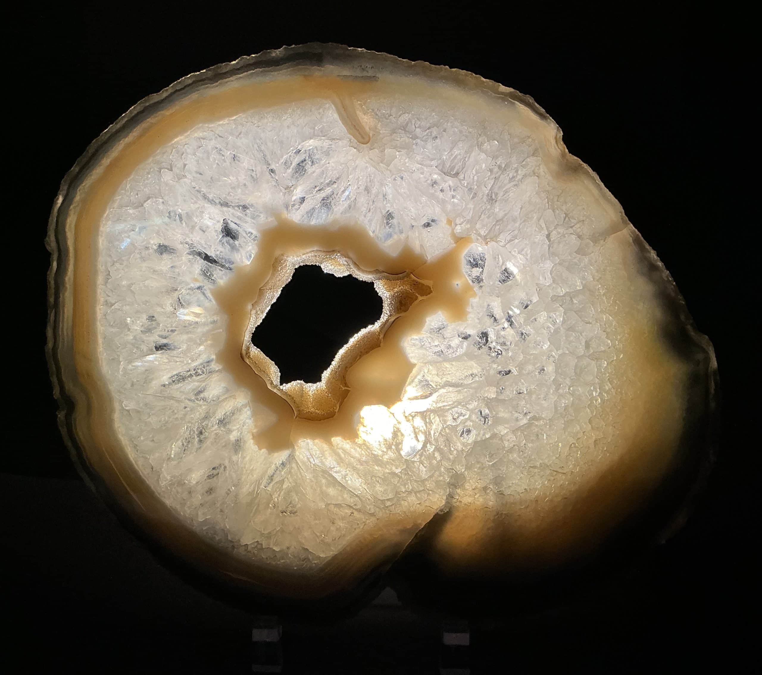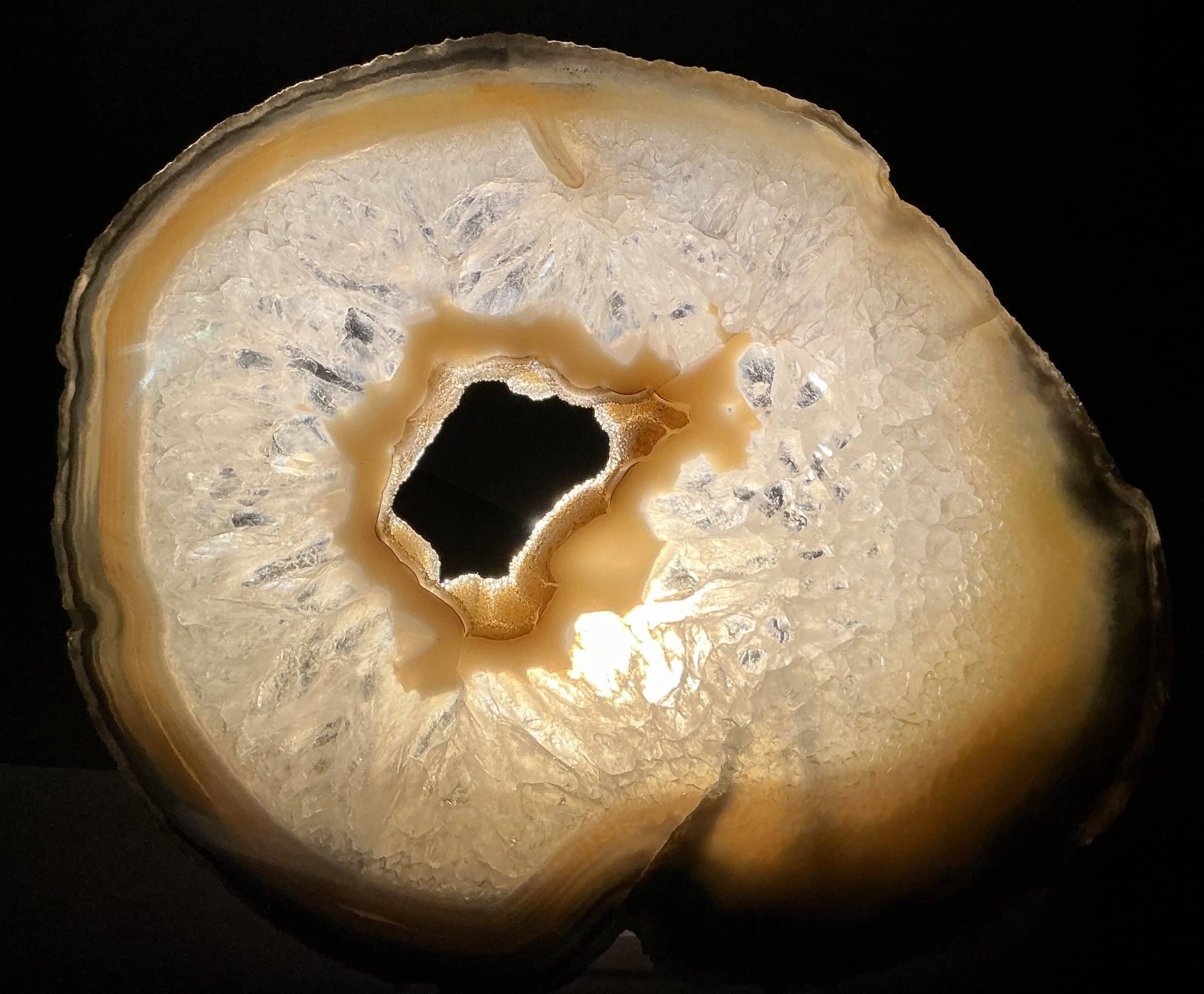 Agates mostly occur as nodules in volcanic rocks or waters containing silica in solution possibly derived from the decomposition of silicates in the lava.  The siliceous matter is deposited in regular layers resulting in the banded or striped formation.