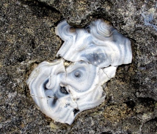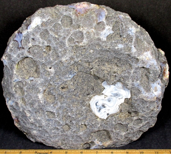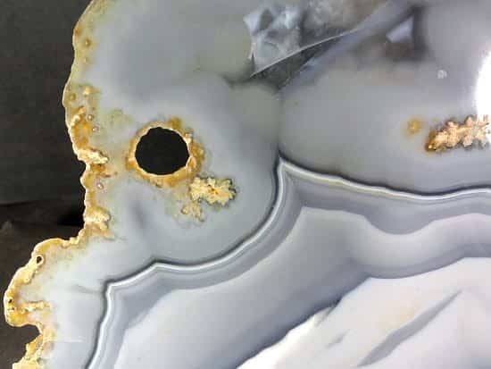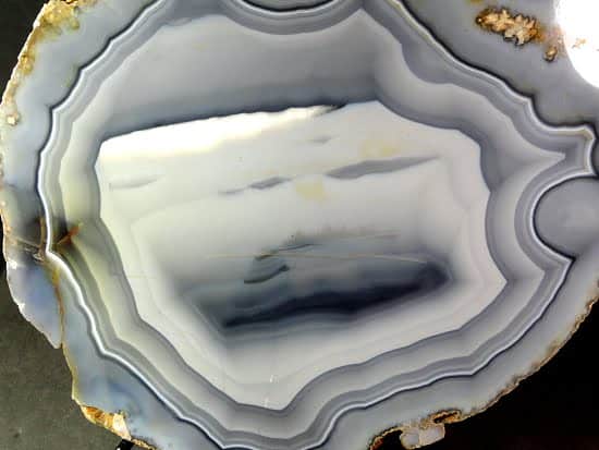 Agates mostly occur as nodules in volcanic rocks or waters containing silica in solution possibly derived from the decomposition of silicates in the lava.  The siliceous matter is deposited in regular layers resulting in the banded or striped formation.