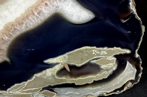 Agates mostly occur as nodules in volcanic rocks or waters containing silica in solution possibly derived from the decomposition of silicates in the lava.  The siliceous matter is deposited in regular layers resulting in the banded or striped formation.