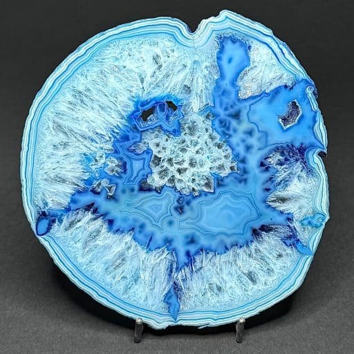 Appearance: Blue (color enhanced) with Agate banding and crystal area. Translucent.