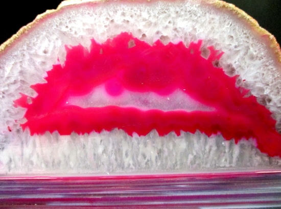 Agates mostly occur as nodules in volcanic rocks or waters containing silica in solution possibly derived from the decomposition of silicates in the lava.  The siliceous matter is deposited in regular layers resulting in the banded or striped formation.