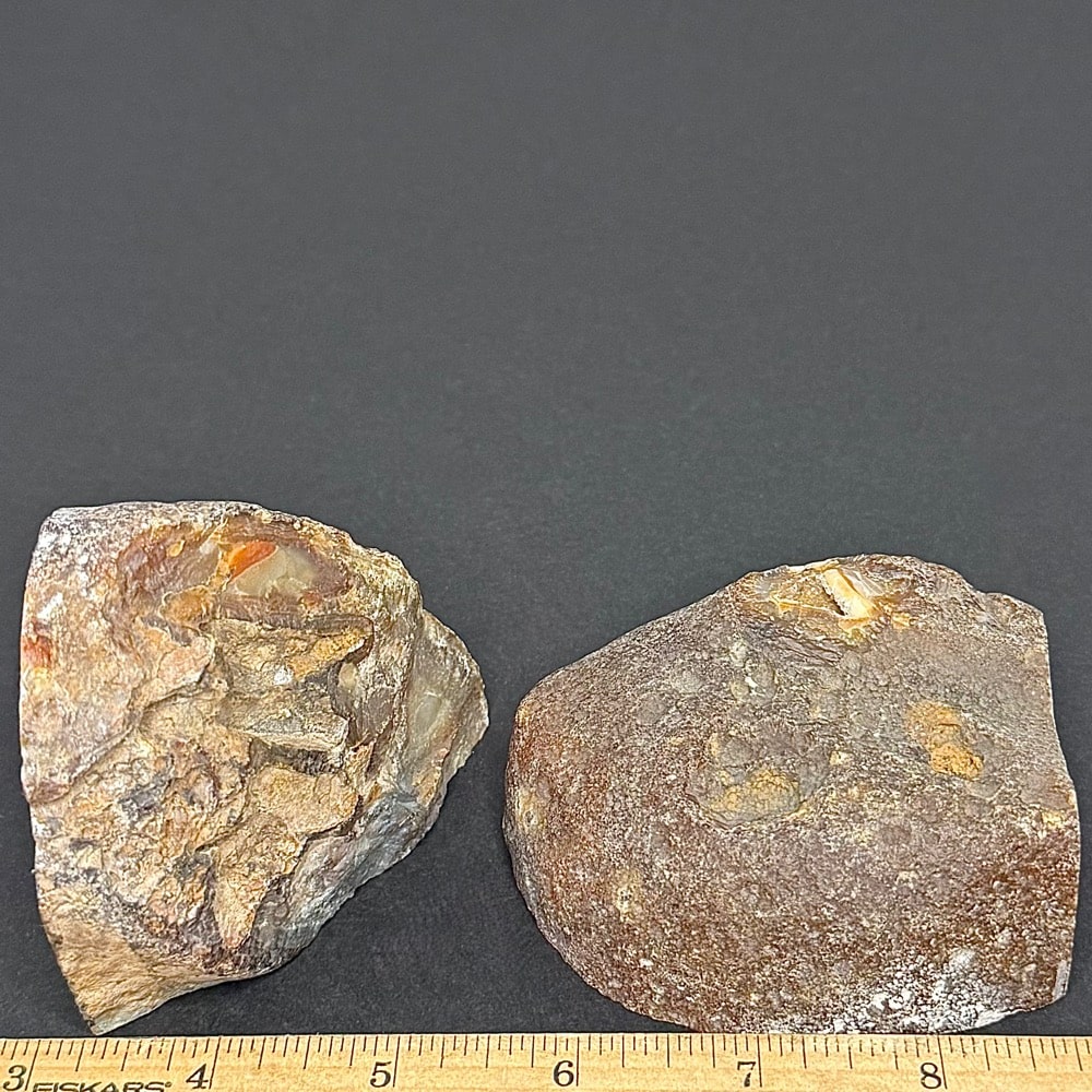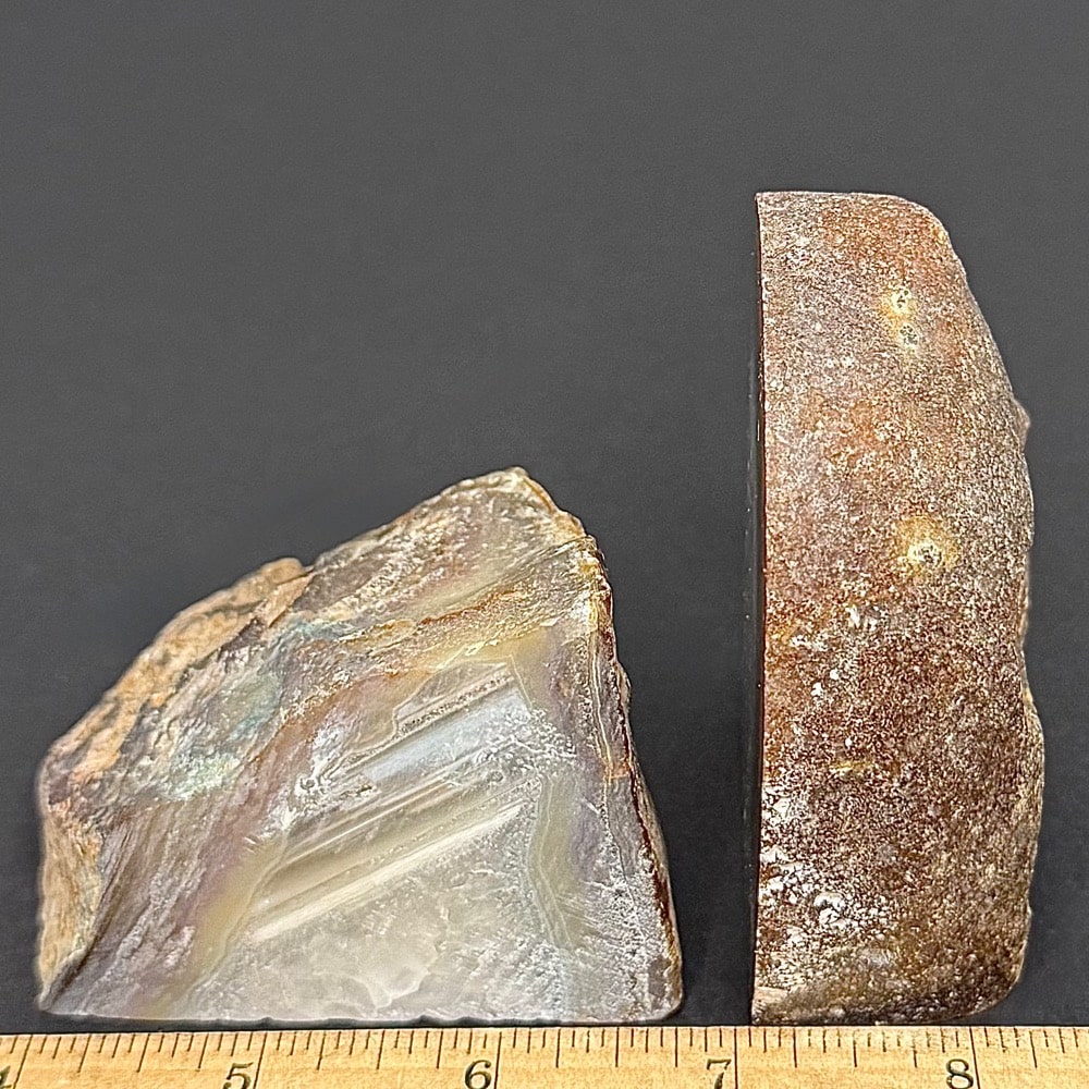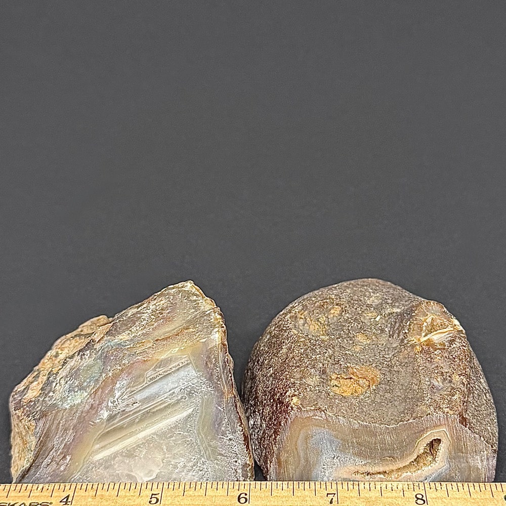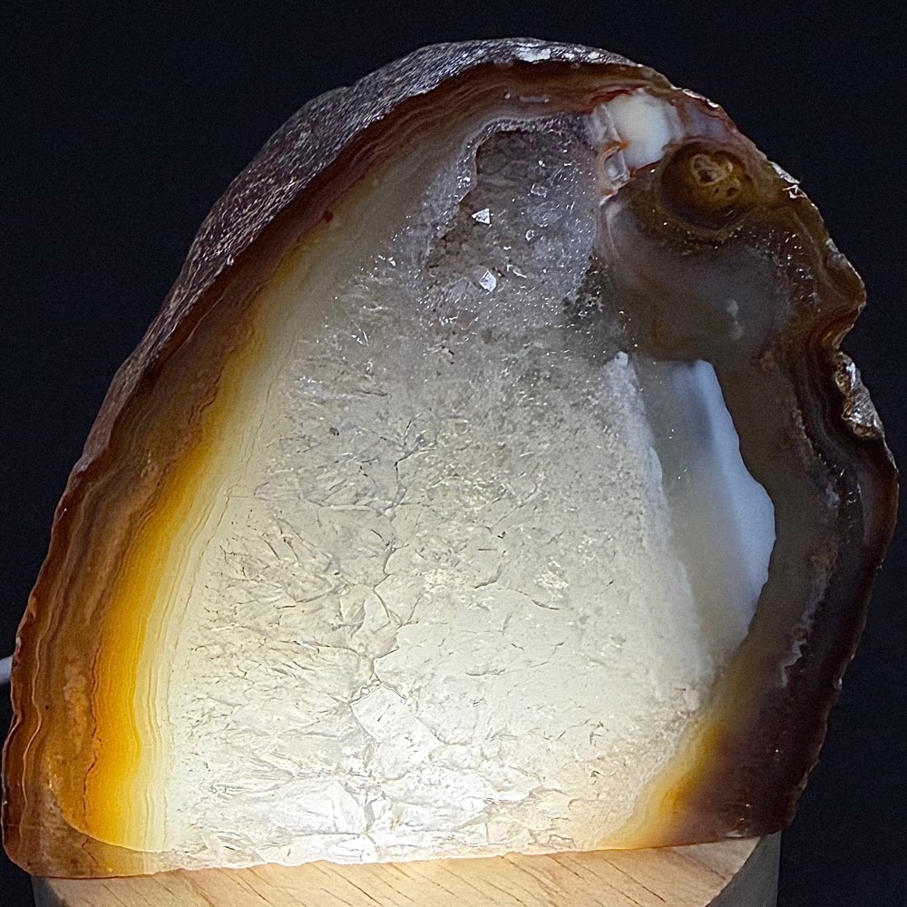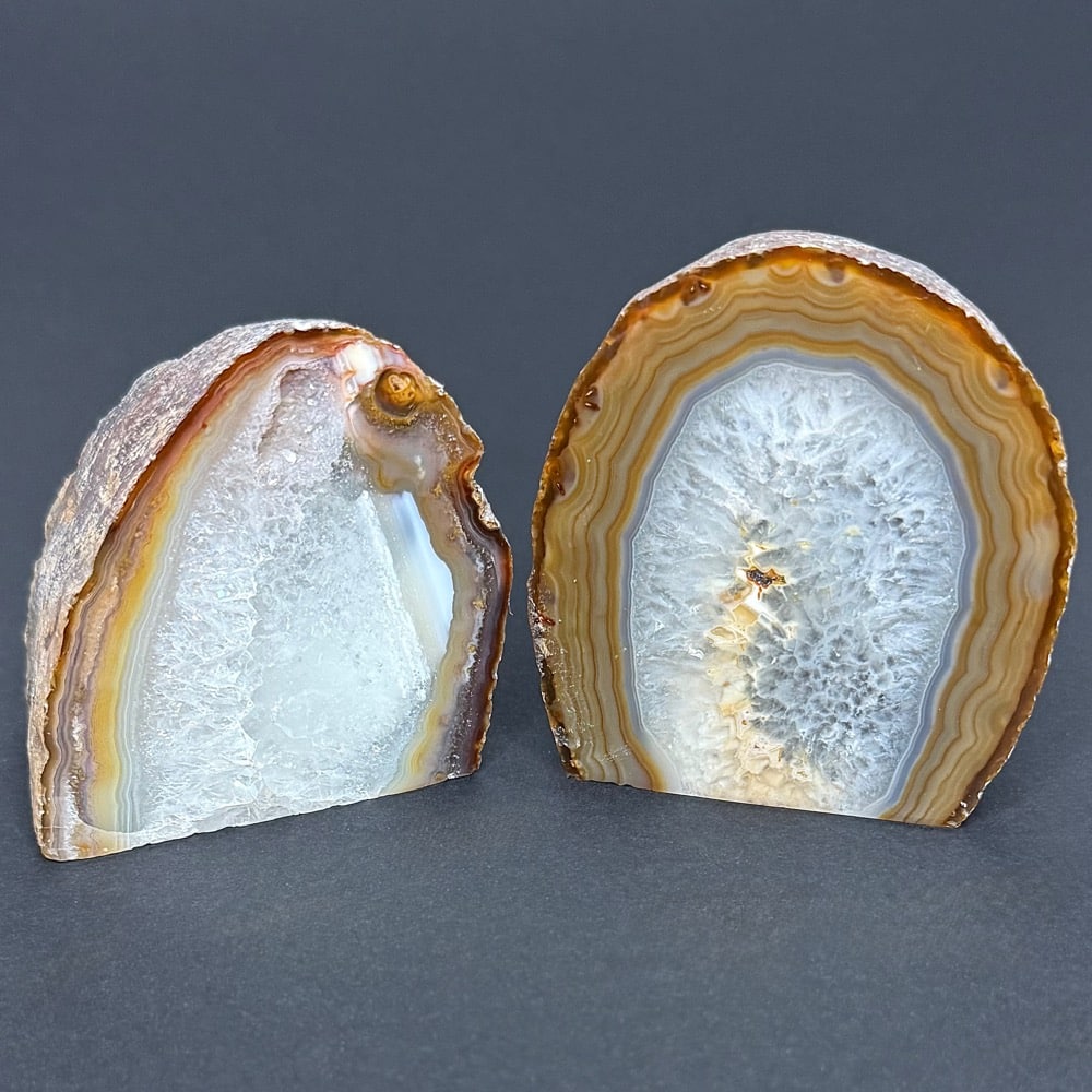 Agates mostly occur as nodules in volcanic rocks or waters containing silica in solution possibly derived from the decomposition of silicates in the lava. The siliceous matter is deposited in regular layers resulting in the banded or striped formation.