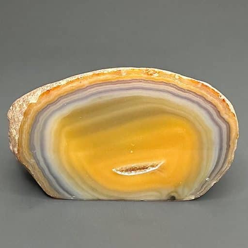 Agates mostly occur as nodules in volcanic rocks or waters containing silica in solution possibly derived from the decomposition of silicates in the lava. The siliceous matter is deposited in regular layers resulting in the banded or striped formation.