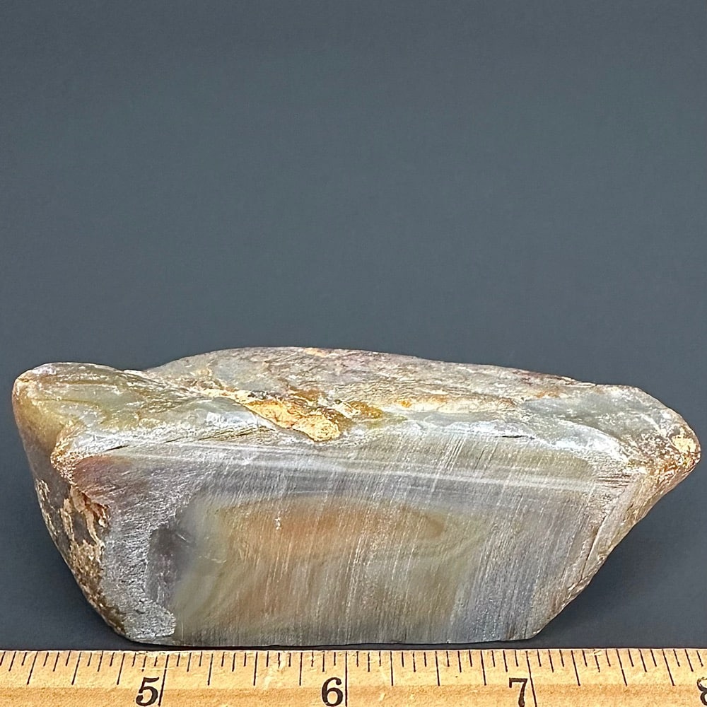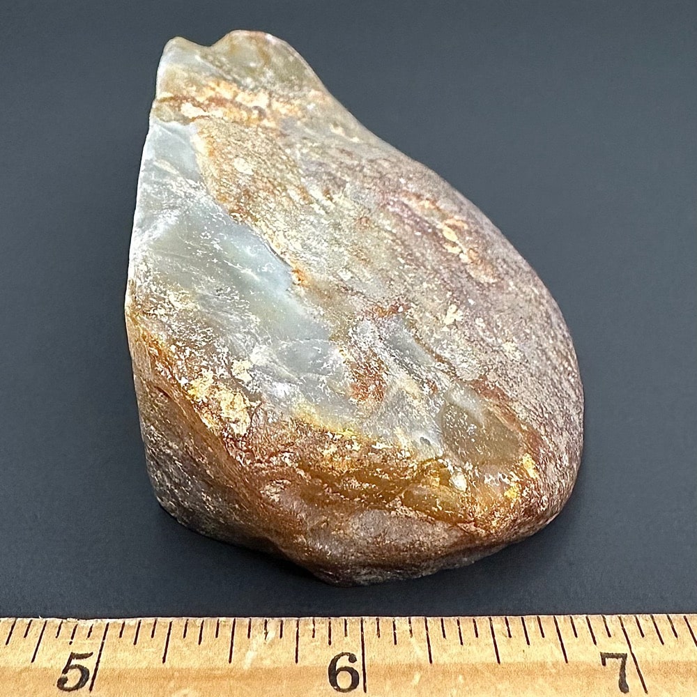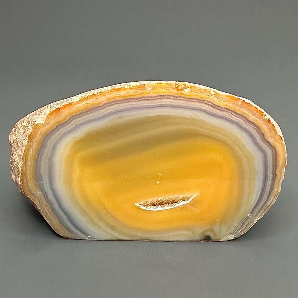 Brazilian Agate is a semi-precious gemstone found in Brazil. It is a variety of chalcedony, a mineral in the quartz family, and is known for its distinctive, multicolored banding patterns that can range from white to various shades of brown, red, blue, green, and yellow. These gemstones originate from the southern region of Brazil, specifically around Rio Grande do Sul, and their formation is linked to volcanic activity from the late Permian age.